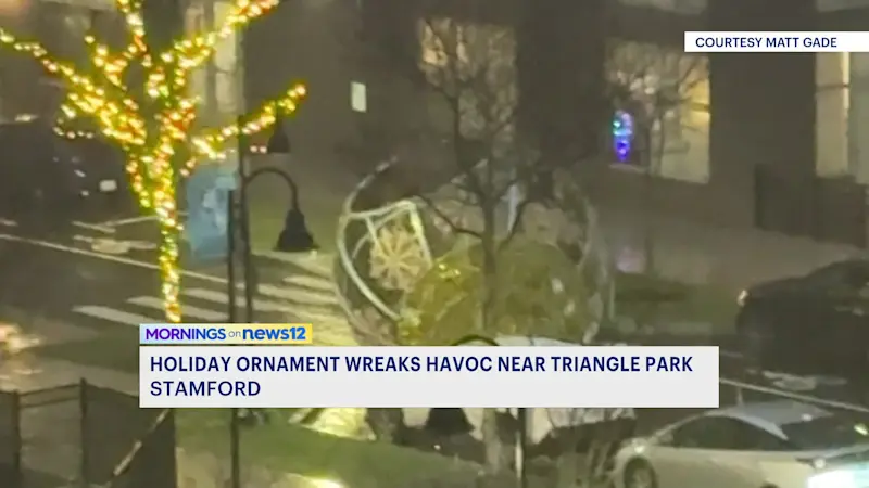 Massive wind-blown holiday decoration damages cars in Stamford’s Harbor Point