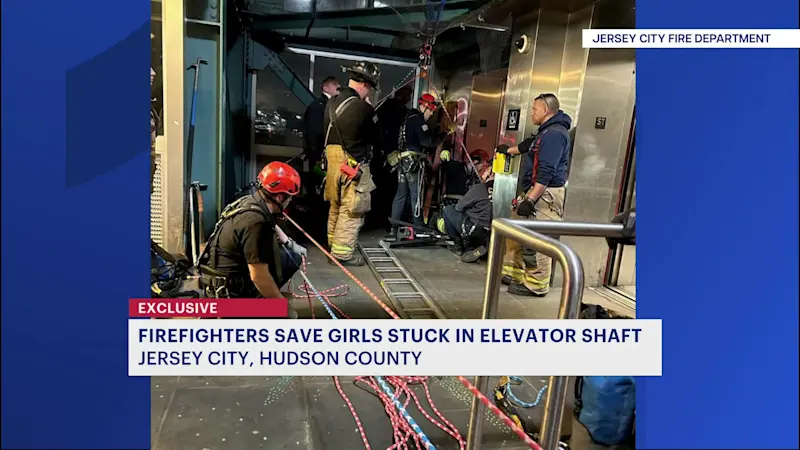 EXCLUSIVE: Jersey City firefighters rescue teen girls stuck in 90-foot-tall elevator at NJ Transit Light Rail stop along Palisades Cliffs