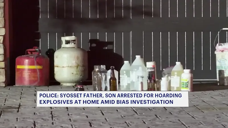 Story image: Father and teen son arrested after chemicals combined to create explosive materials found in Syosset home