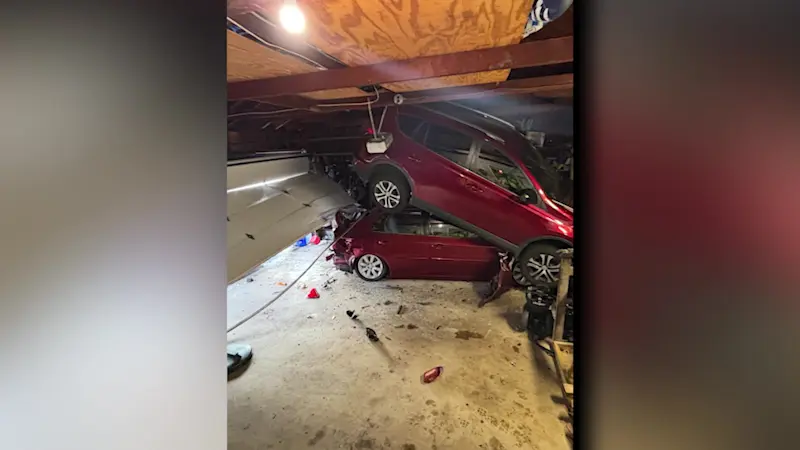 'Smooshed like tin cans.' Bizarre snowplow crash destroys cars in Fairfield garage