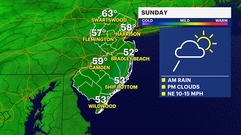 Morning rain before cloudy Sunday across New Jersey
