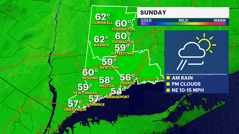 Morning rain before cloudy Sunday for Western Connecticut