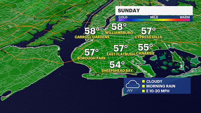Morning rain before cloudy Sunday for Brooklyn