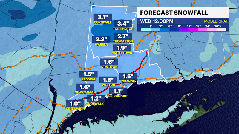 STORM WATCH: A quick burst of snow hits Western Connecticut Wednesday morning
