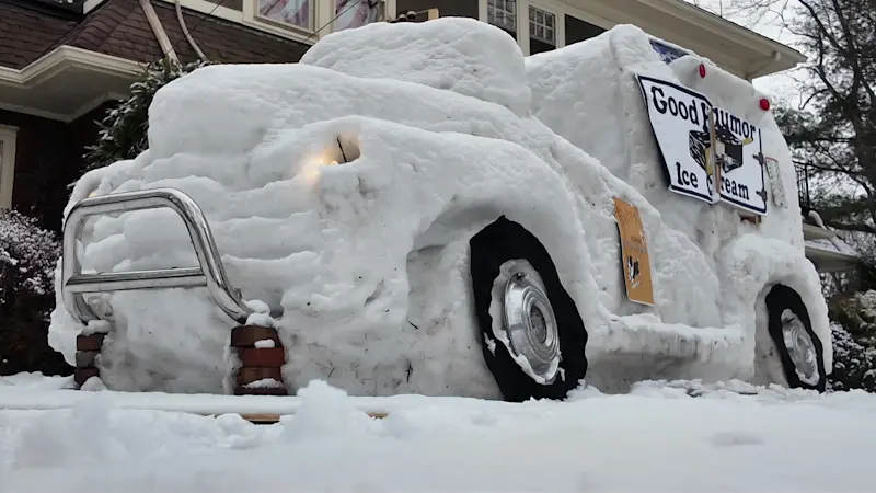 Cranford resident builds ice cream truck out of snow, raises thousands for charity