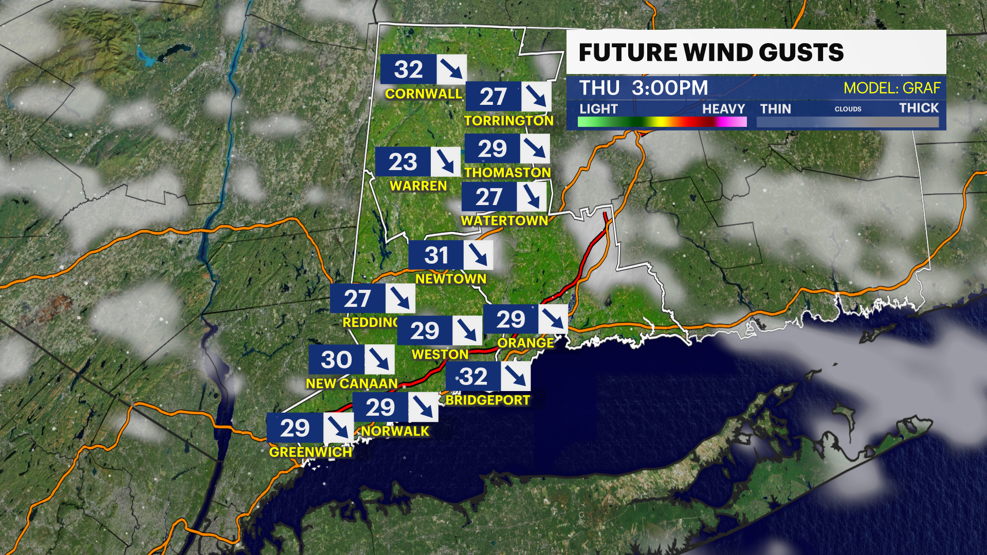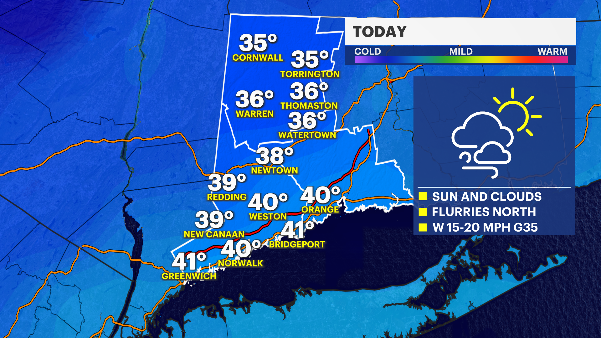 TODAY - Sun to start, then mostly cloudy and breezy. Winds occasionally gust to 30 mph.