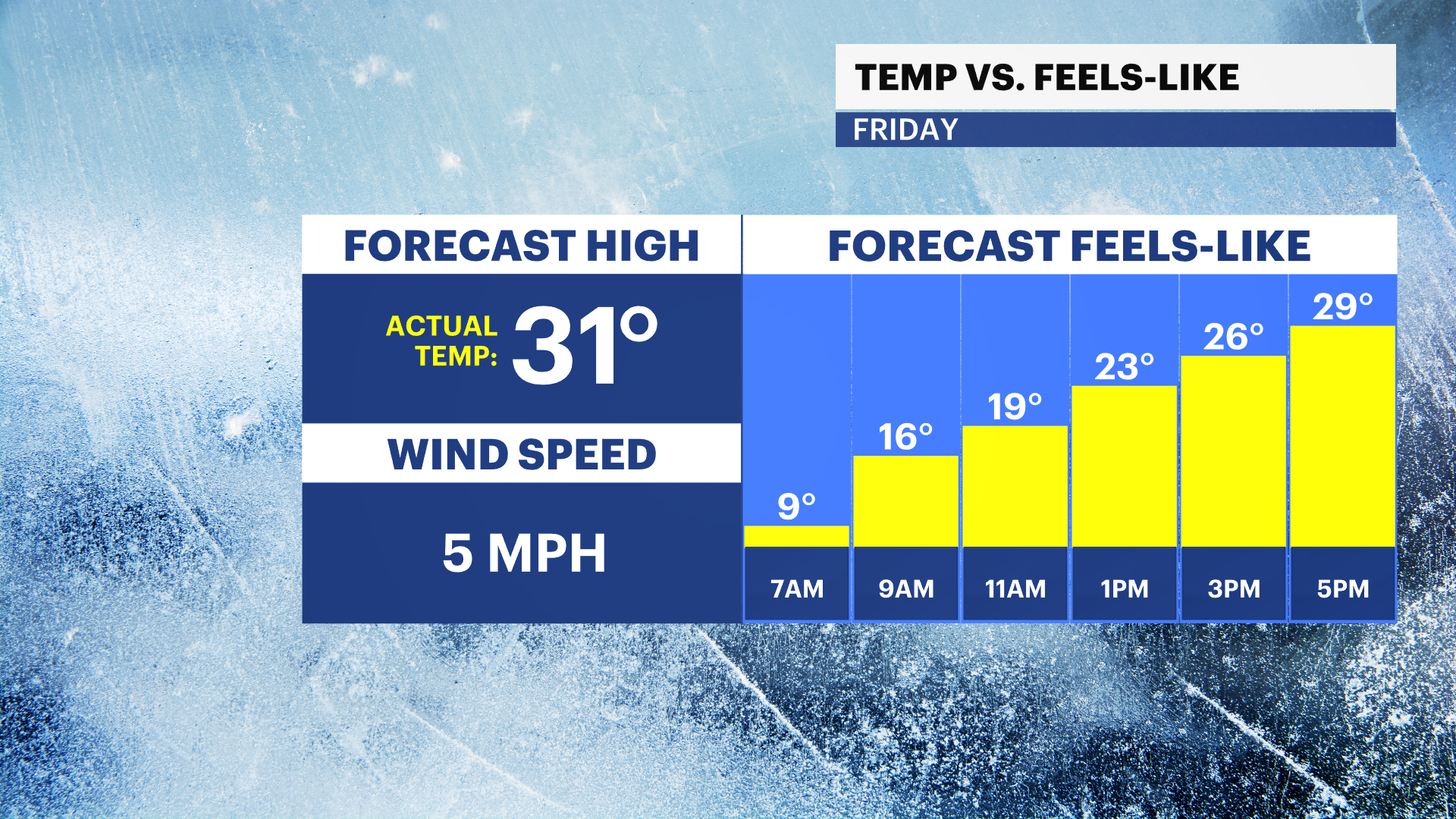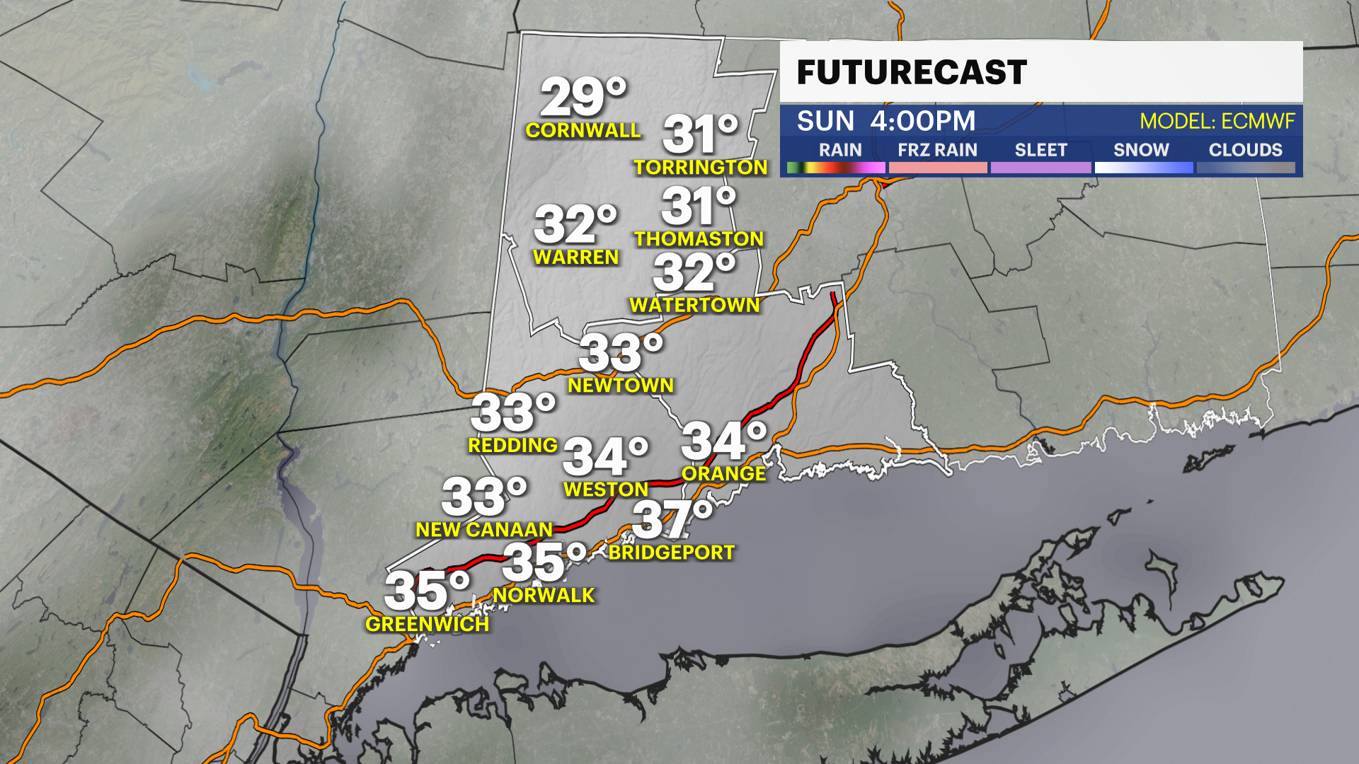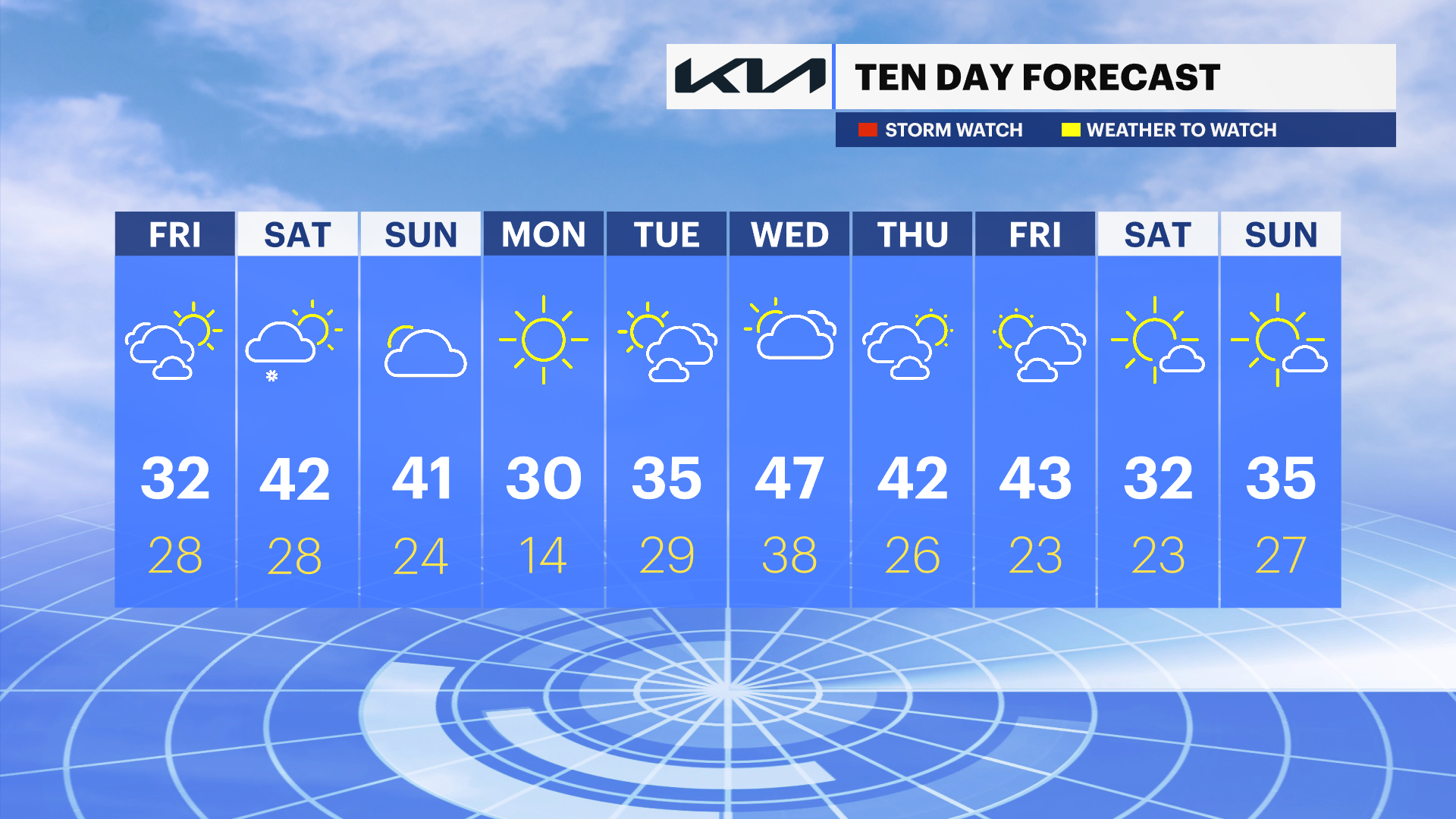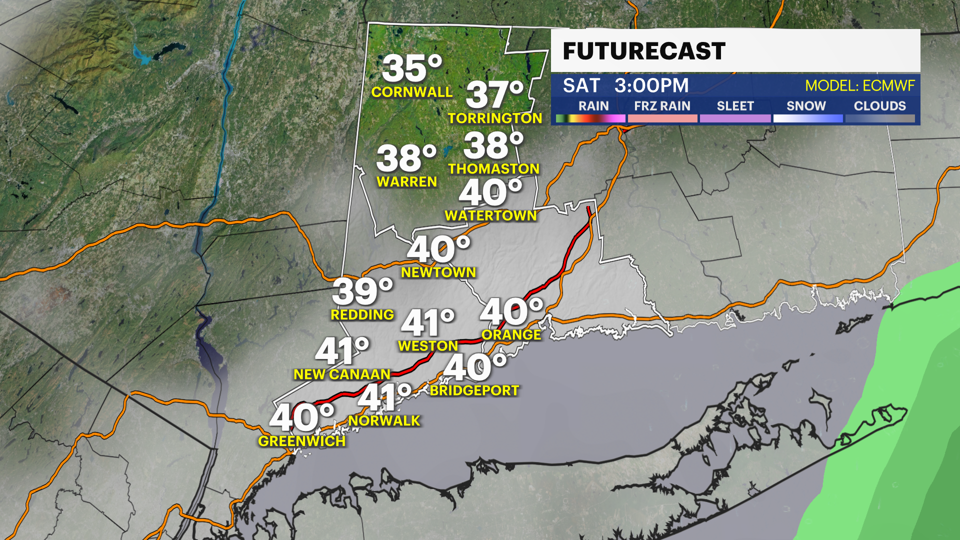 Arctic air has moved over Connecticut overnight. Temperatures this morning are in the teens and single digits farther north and it will feel like the teens and 20s for most of the day. We're tracking a few rain or snow showers for Saturday morning. The next bitter blast will arrive Monday into Tuesday. There is no break from the cold in sight, but there's also no major storms for the upcoming week. Here's a day-by-day breakdown of the forecast.