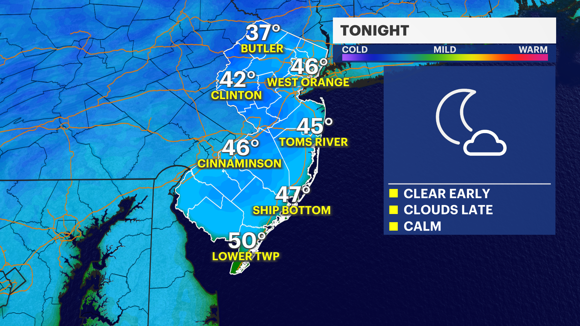 Sunny and bright today in New Jersey; tracking chance of rain for Monday