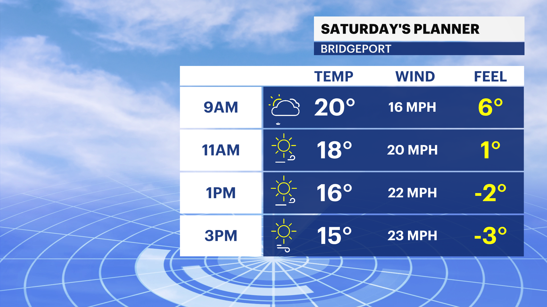 The winds will gradually relax some by Sunday night. Sunday's high temperature will stay in the teens and if it stays below 18 degrees in Bridgeport, that could be a new temperature record.