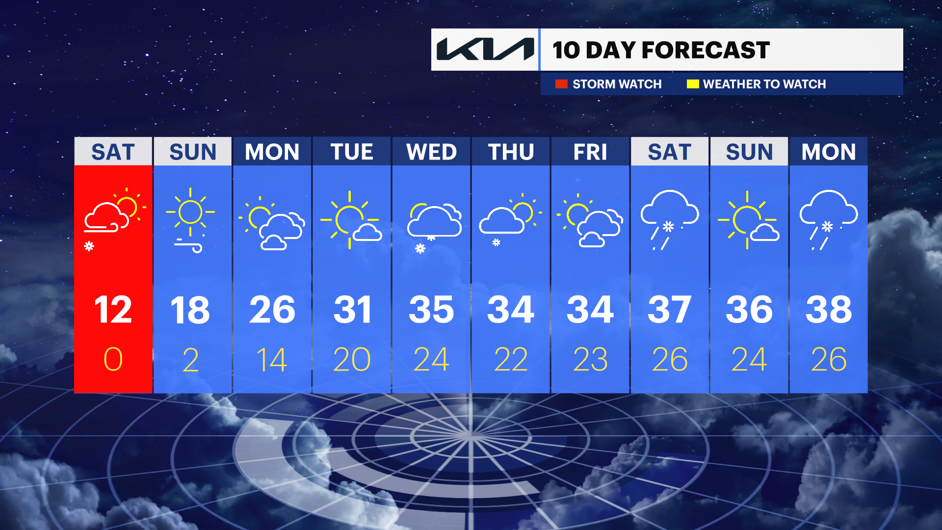 Temperatures gradually recover next week. Highs will rise above freezing starting Wednesday. There is a chance of some snow and rain showers too.
