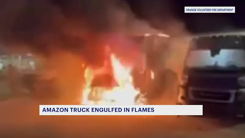 Fire engulfs Amazon truck in Orange
