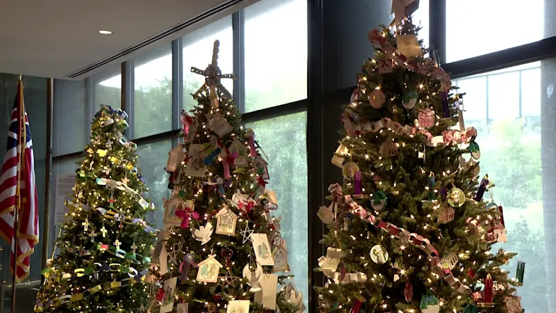 Twenty Christmas trees are decorated by Catholic school children from across Connecticut.