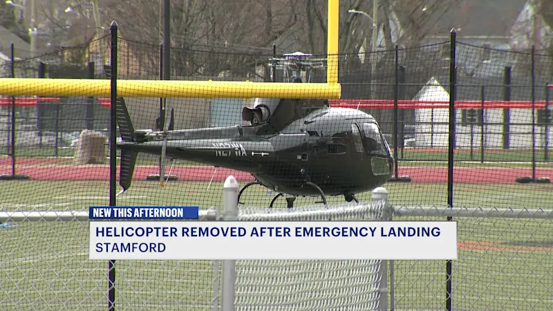Stamford Public Schools said there was no damage to the football field following the landing.