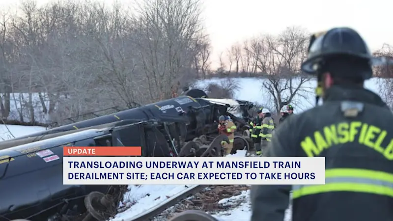 Train cars with liquid petroleum being removed after Mansfield derailment