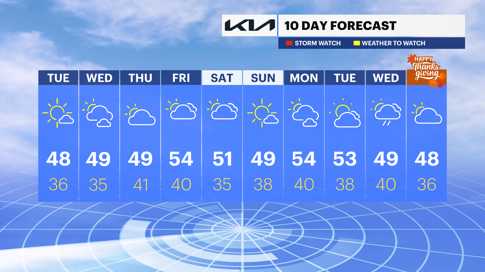 THURSDAY: Mostly cloudy. High 49