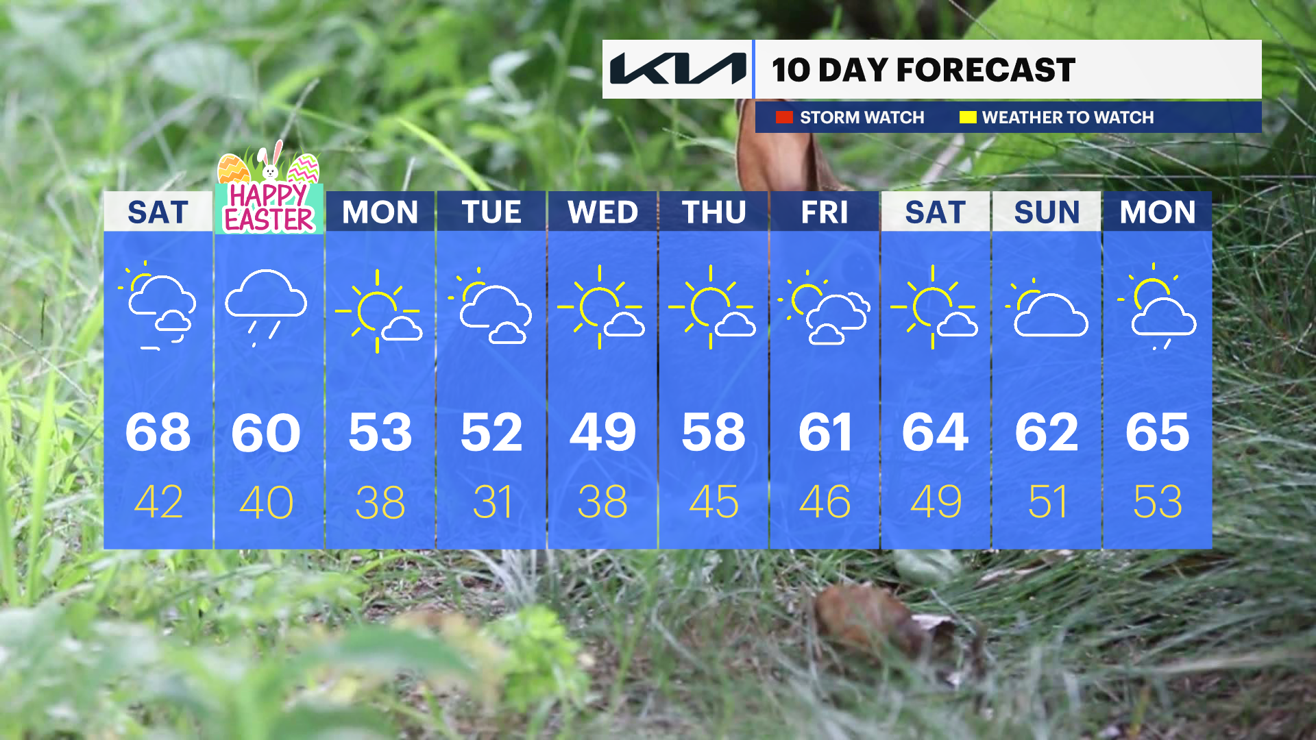 The drier weather doesn't last for too long. A few showers will develop late Saturday night into early Sunday morning. Easter Sunday will feature clouds followed by scattered rain showers for the afternoon and early evening. This won't amount to very much, but we can see around one-quarter to one-third of an inch of rain.