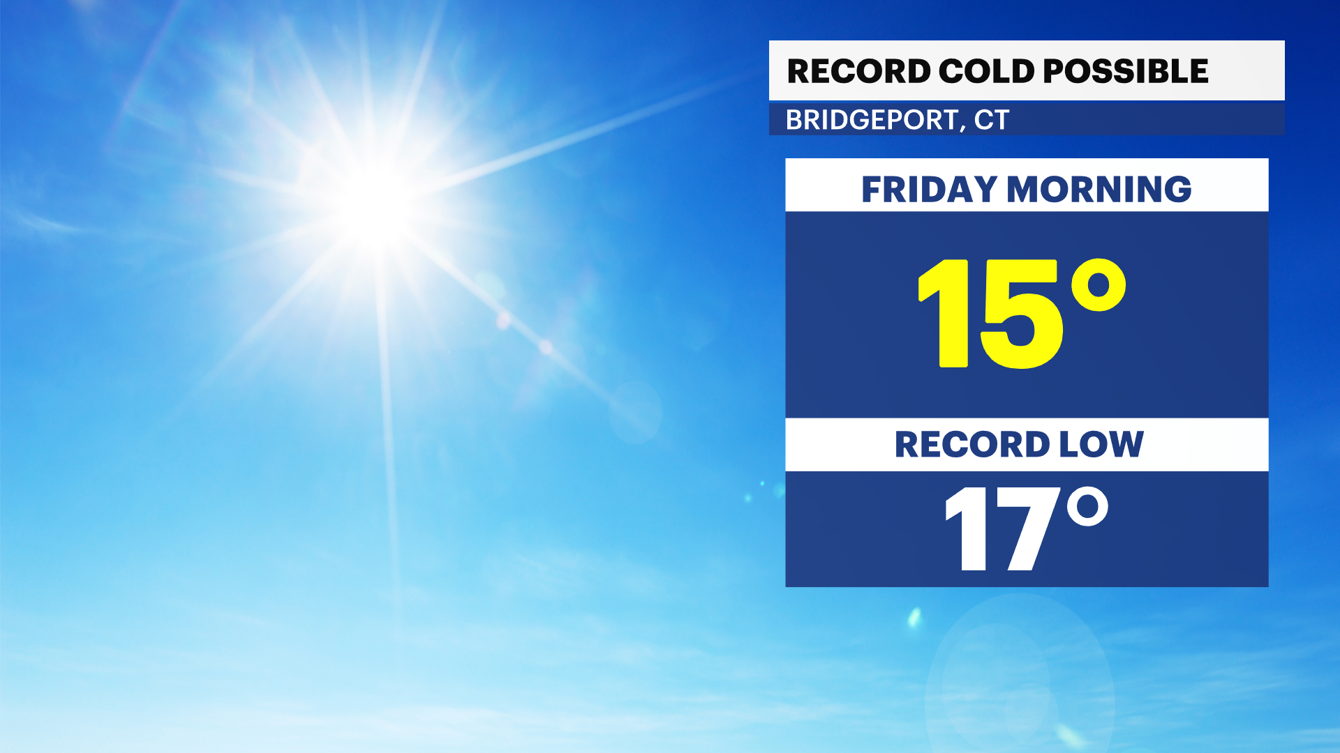 Friday: Record Cold - Temperatures are in the teens on Friday morning. The record for Bridgeport is 17F for December 5, set in 1989. Records go back to 1948. Afternoon high temperatures will remain below freezing despite mostly sunny skies.
