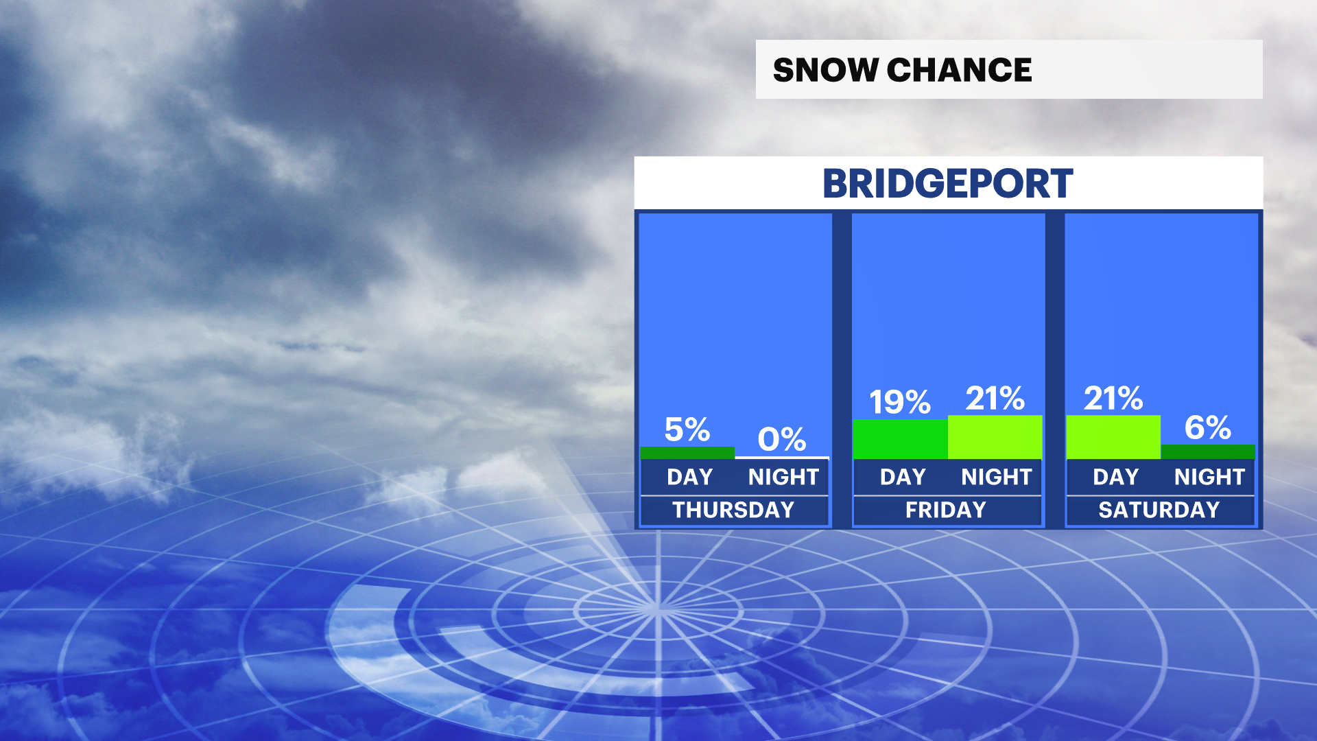 Thursday: Sun then clouds - Temperatures are near 40 degrees in the afternoon with increasing cloud cover. A few snow flurries are possible late afternoon in Litchfield county.