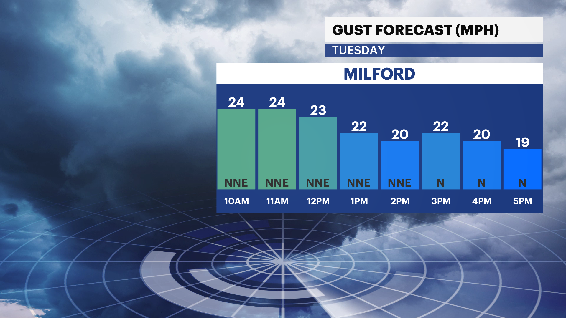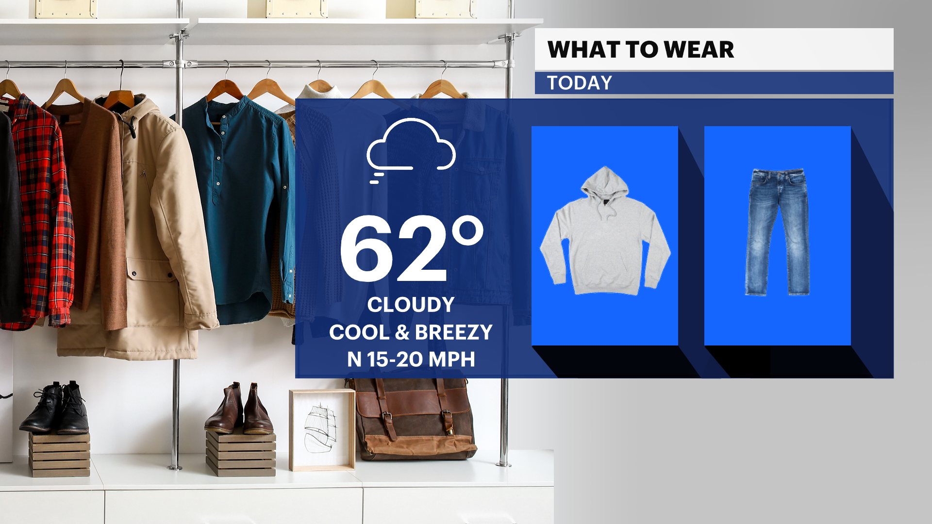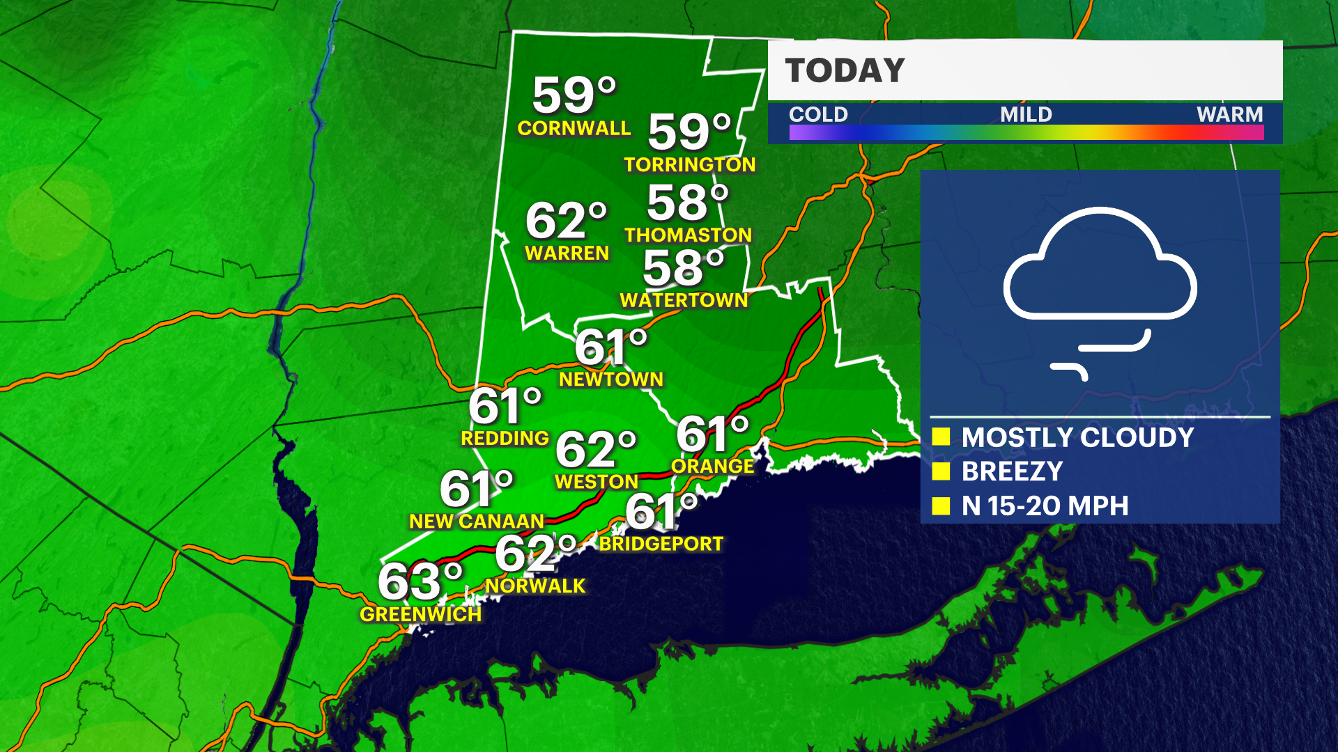 This morning will feature a slight chance of a shower, but most of the day into the afternoon will stay dry under mostly cloudy skies. Highs will reach the low 60s with a steady northeast breeze.