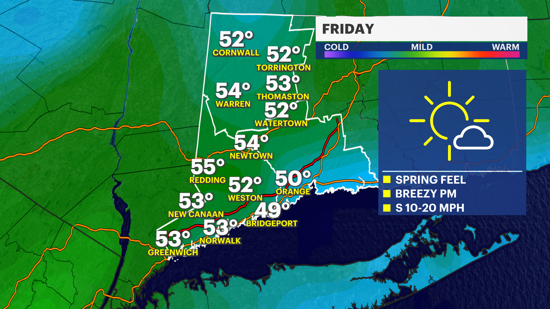 The weekend is nice to start with temperatures in the mid-50s under mostly sunny skies on Saturday. It will be a breezy day with winds occasionally gusting to 30 mph from the west.