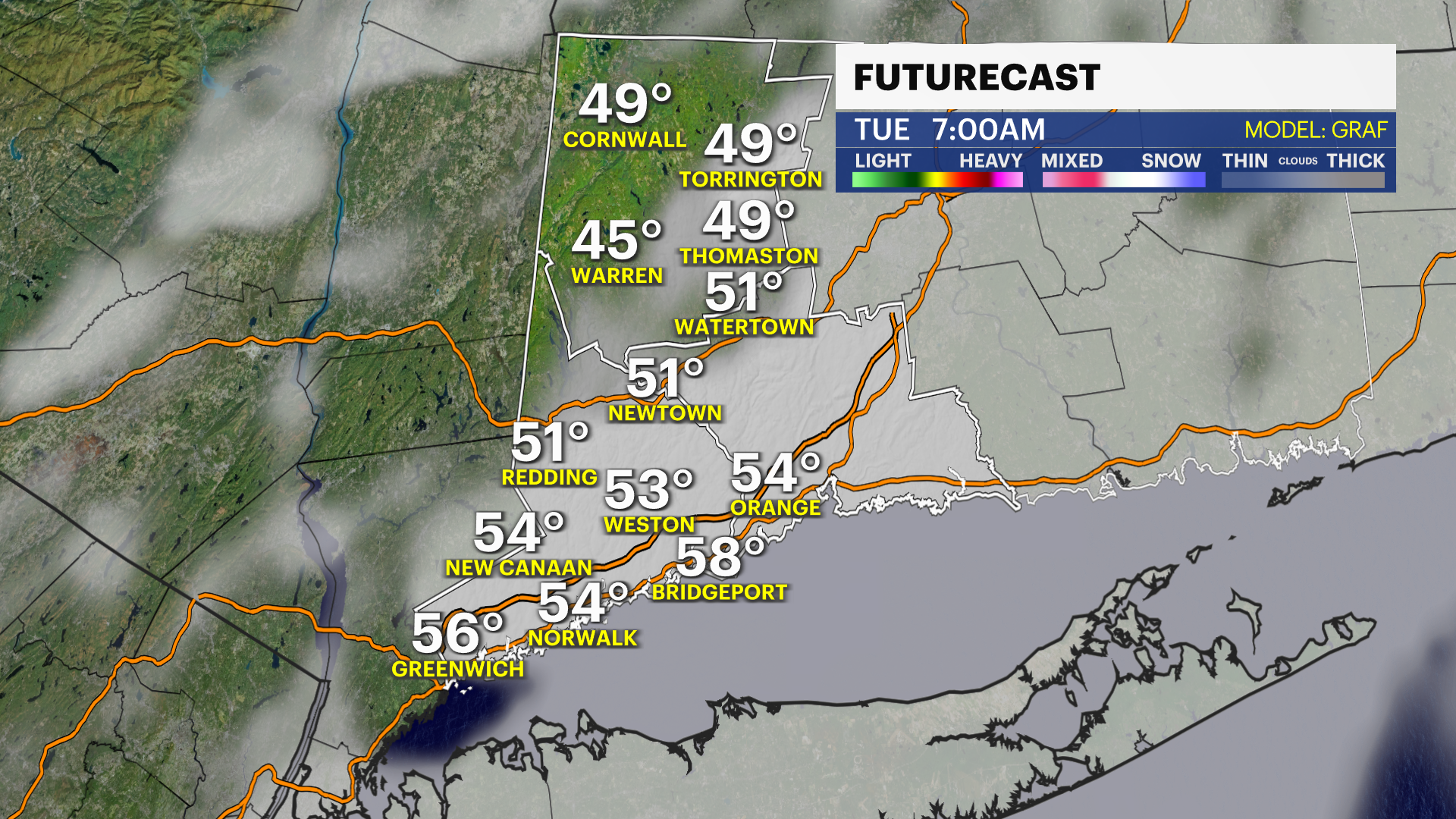 THURSDAY: Mostly sunny. High of 68.