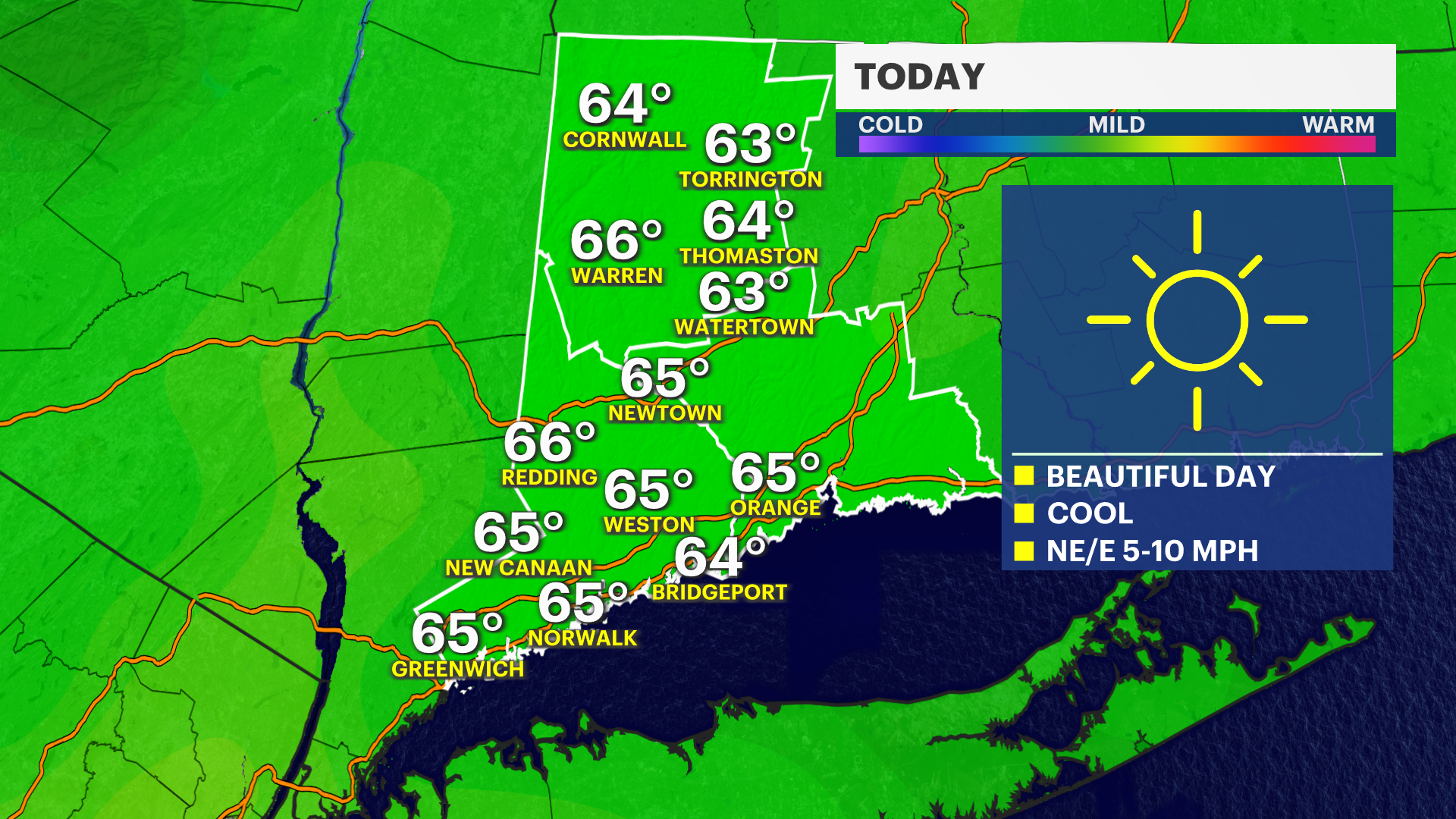 Today will be another gorgeous day with temperatures climbing into the mid to upper 60s for western Connecticut.