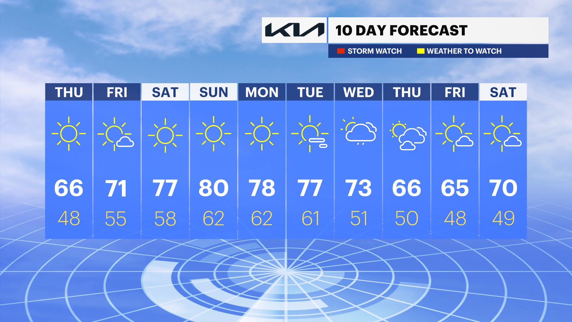 No rain is expected for the next several days. We'll keep the warmth going into the beginning of next week, where temperatures look to stay in the upper 70s.