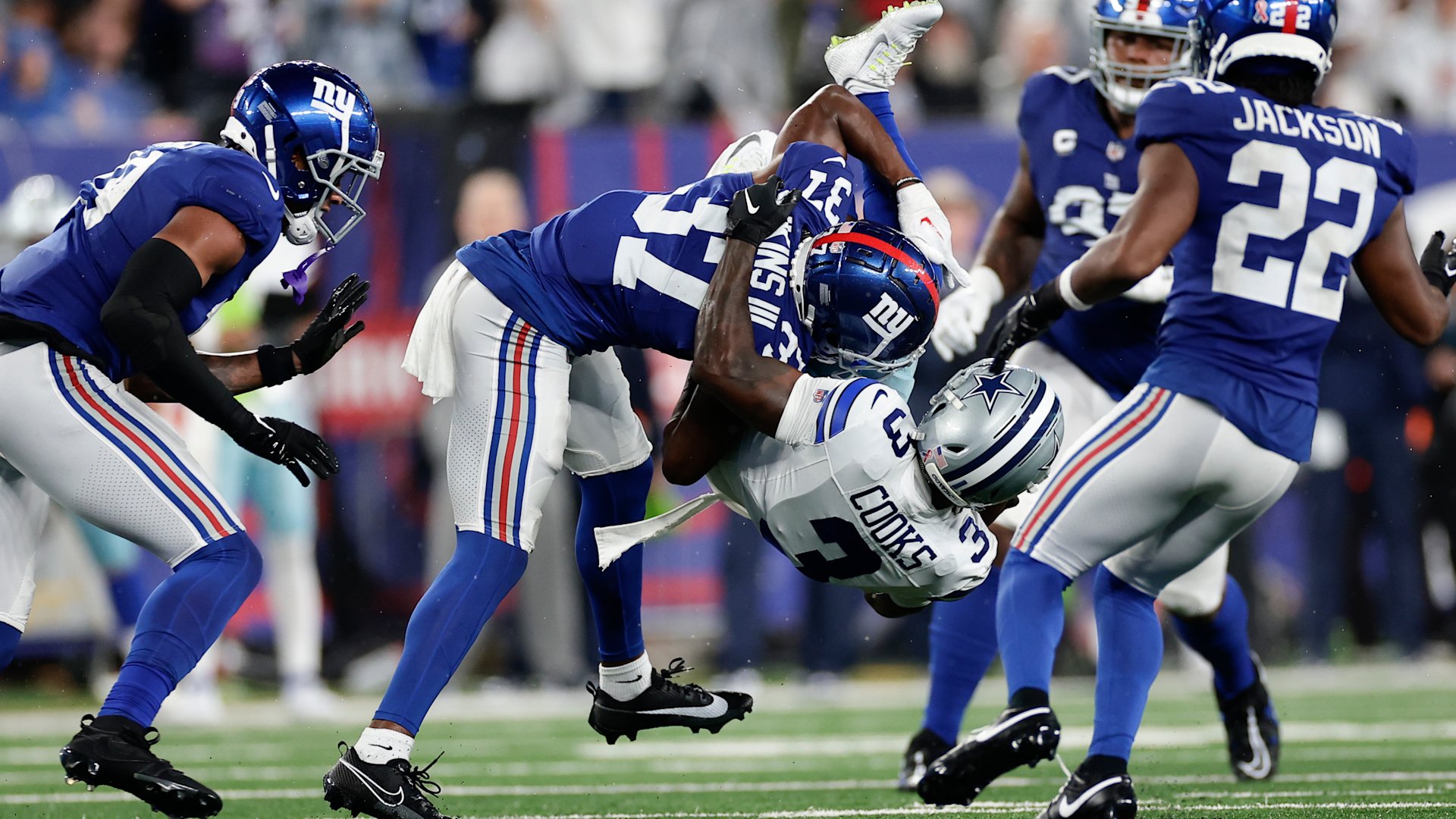 Jones finished 15 of 28 for 104 yards with a quarterback rating of 32.4. Prescott was 13 of 24 for 143 in beating the Giants for the 11th straight time.