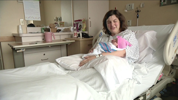 The mother, who has two other children, says labor came on so fast it felt like knives were stabbing her stomach. Her husband raced to get her to Bridgeport Hospital, but they didn't make it there in time.