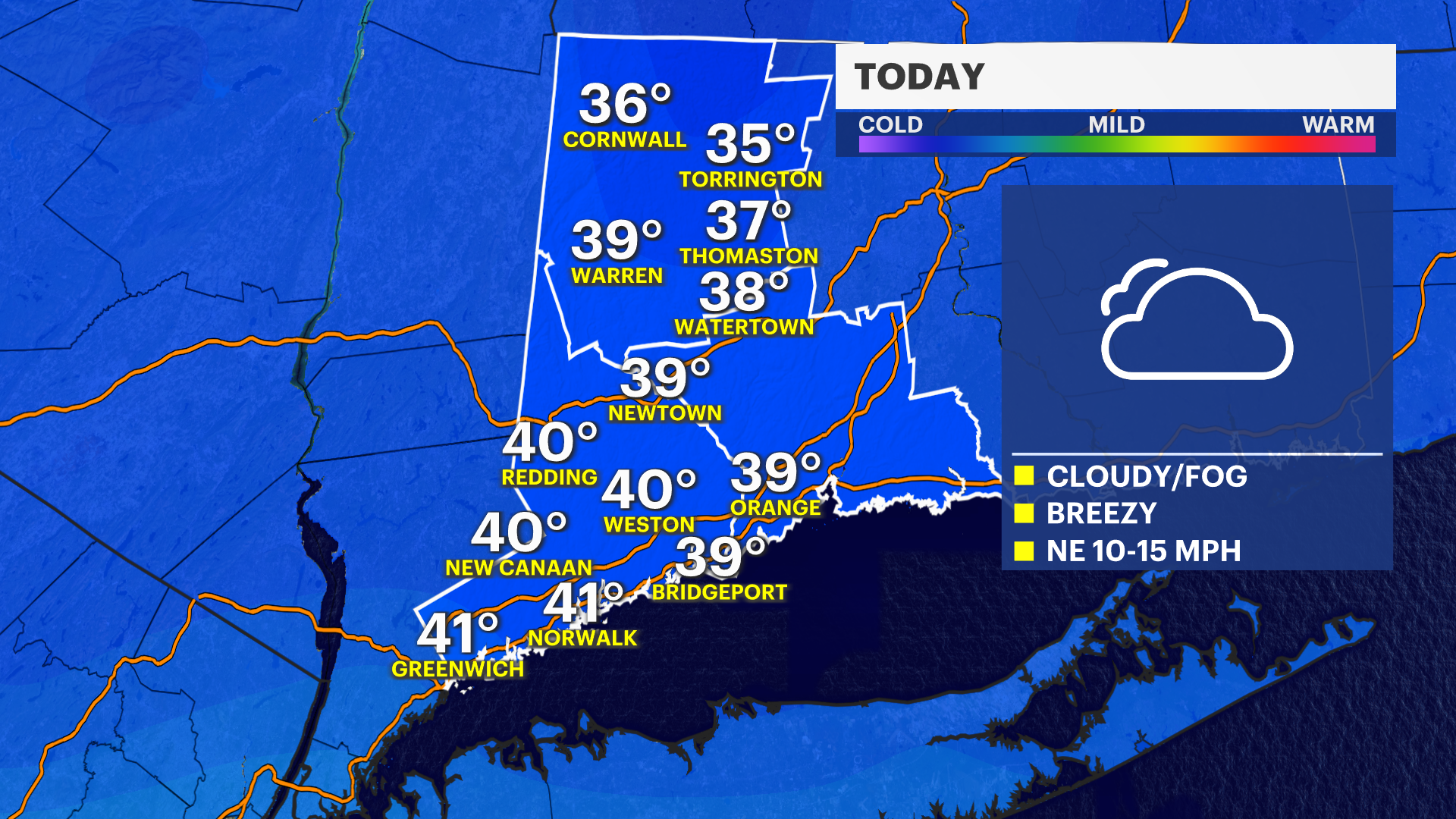 Cloudy end to the week before a gradual warm-up across western Connecticut