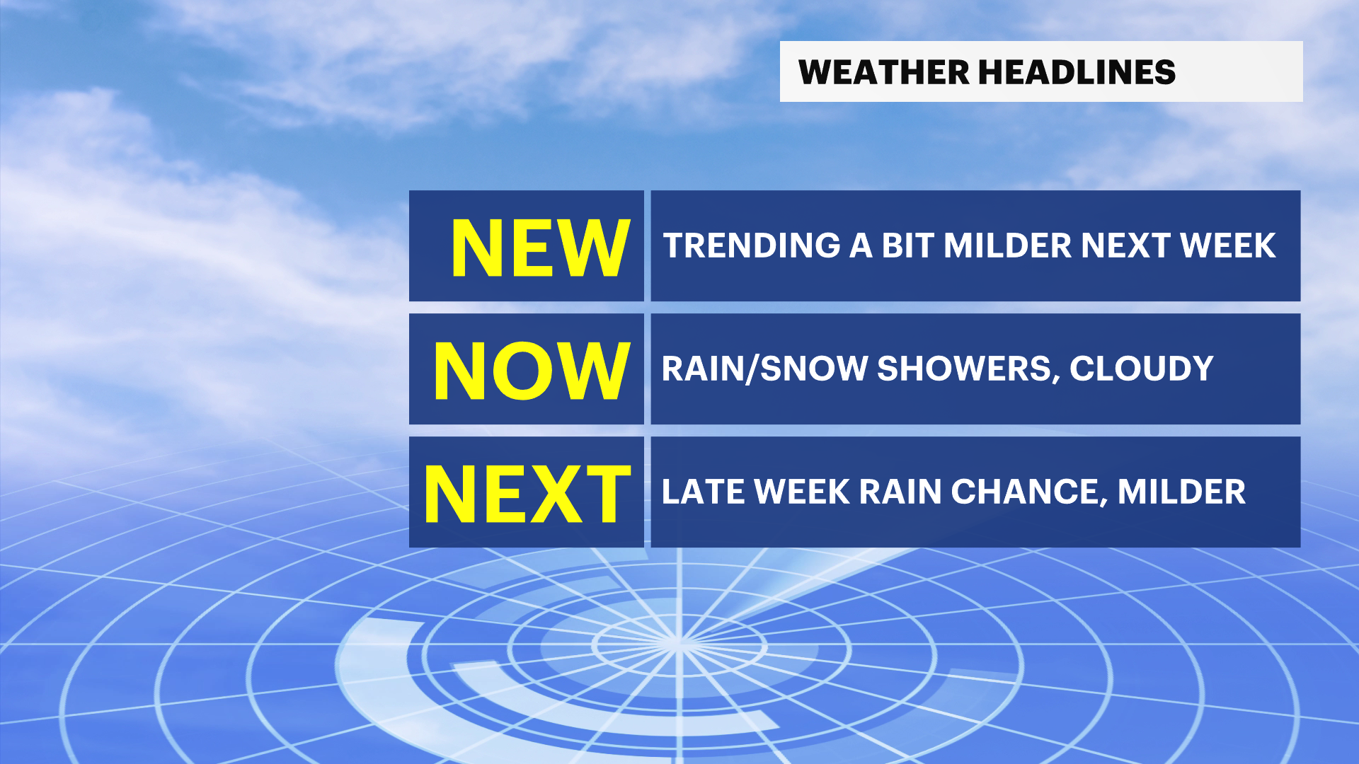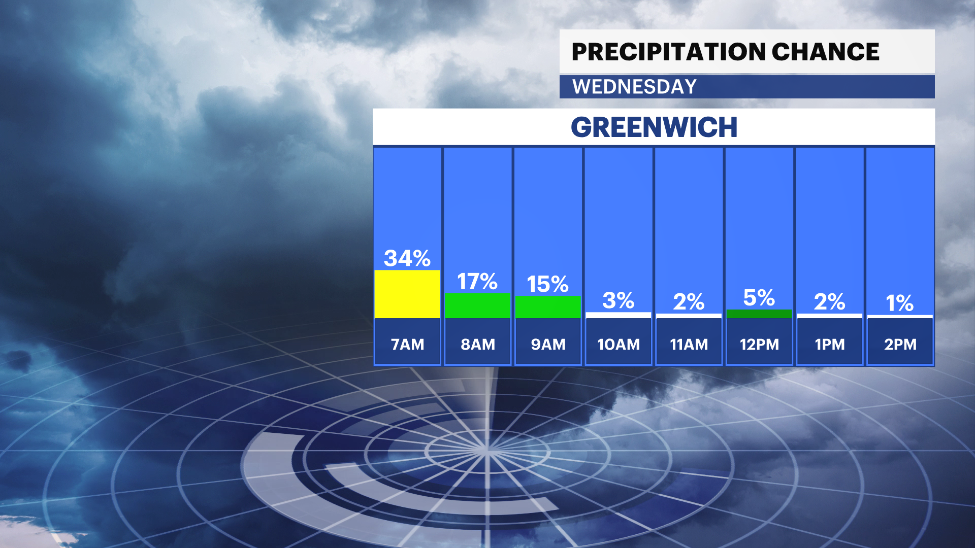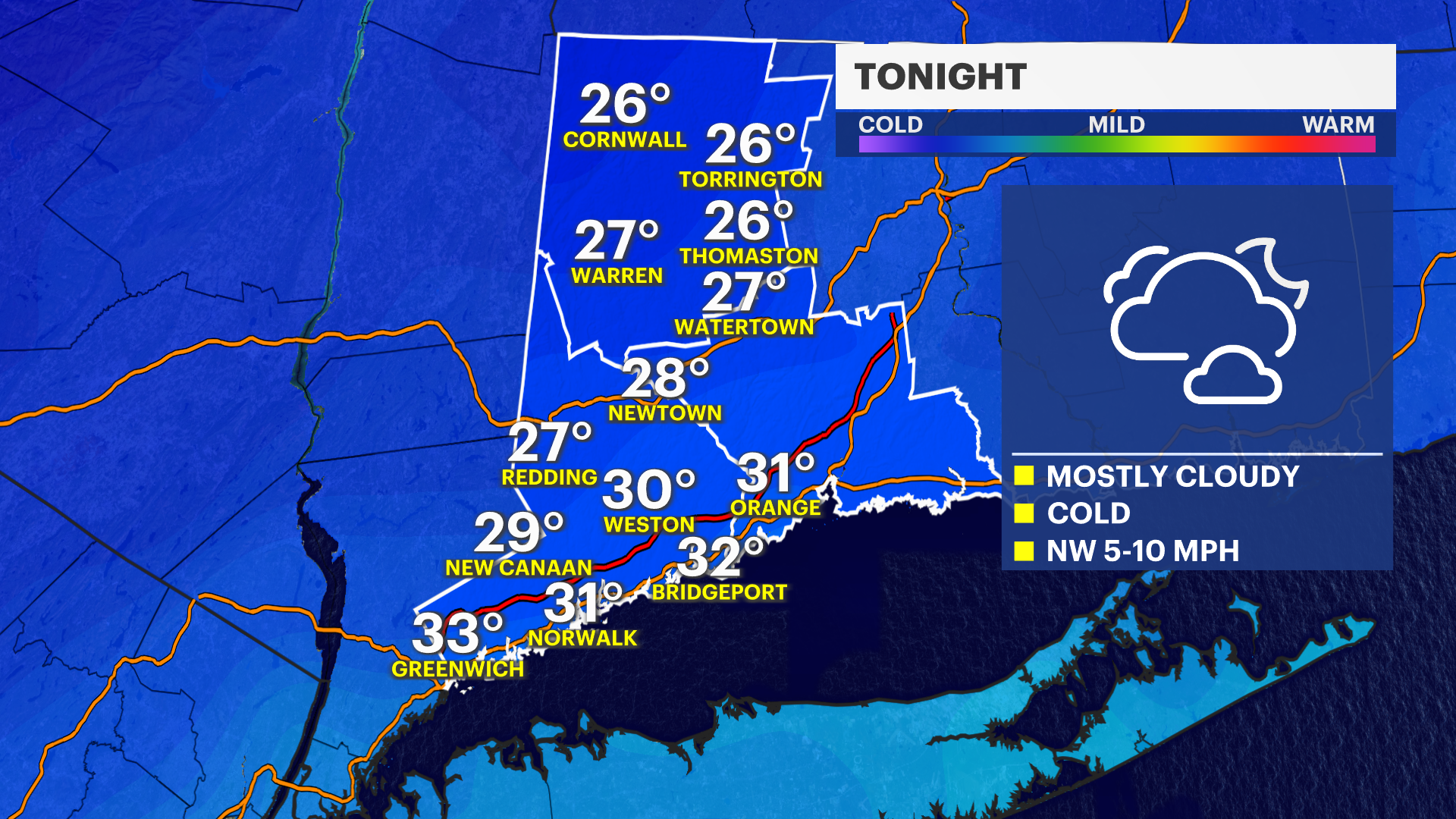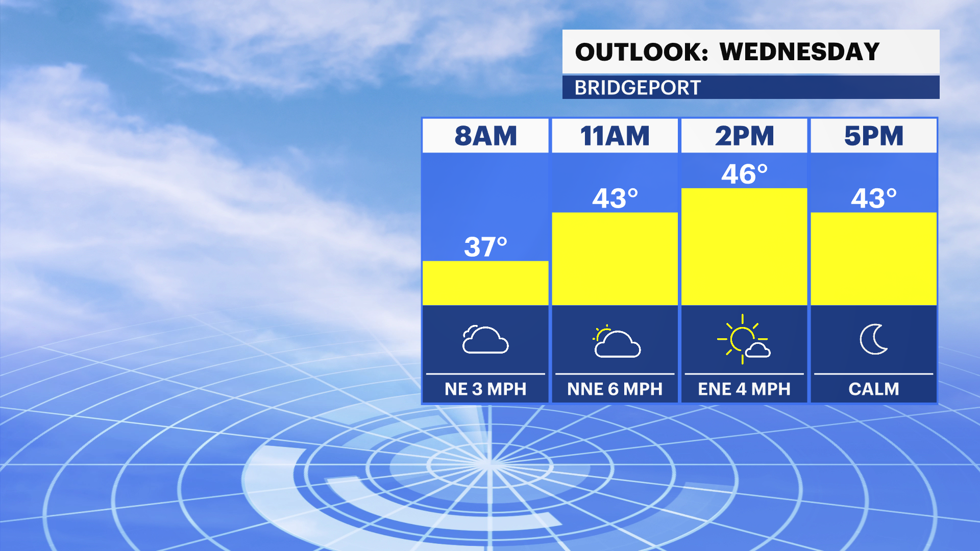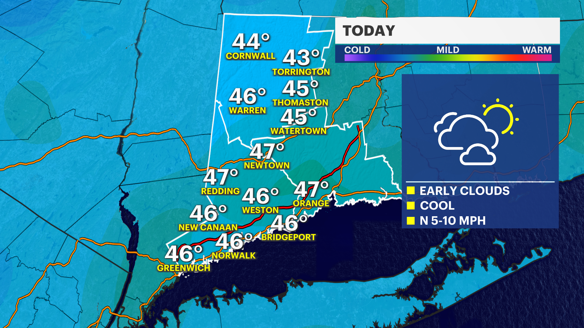 This morning will be cloudy, cool with a slight chance of a rain or snow shower. A weak storm system will be passing off to our south this morning, and western Connecticut is just on the outer cusp of the moisture shield.