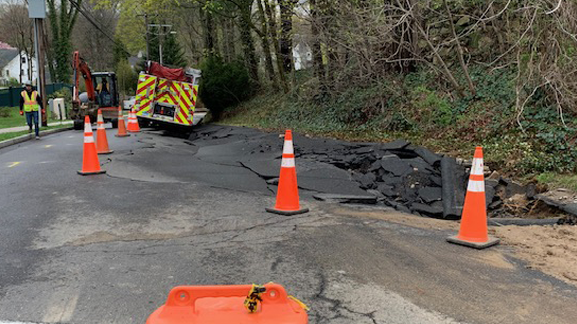 The main break caused the road to collapse, trapping a fire truck. (4/12/2021)