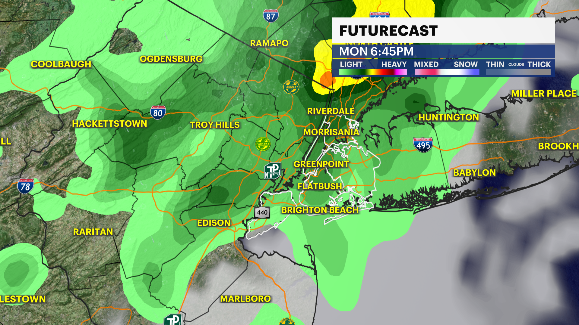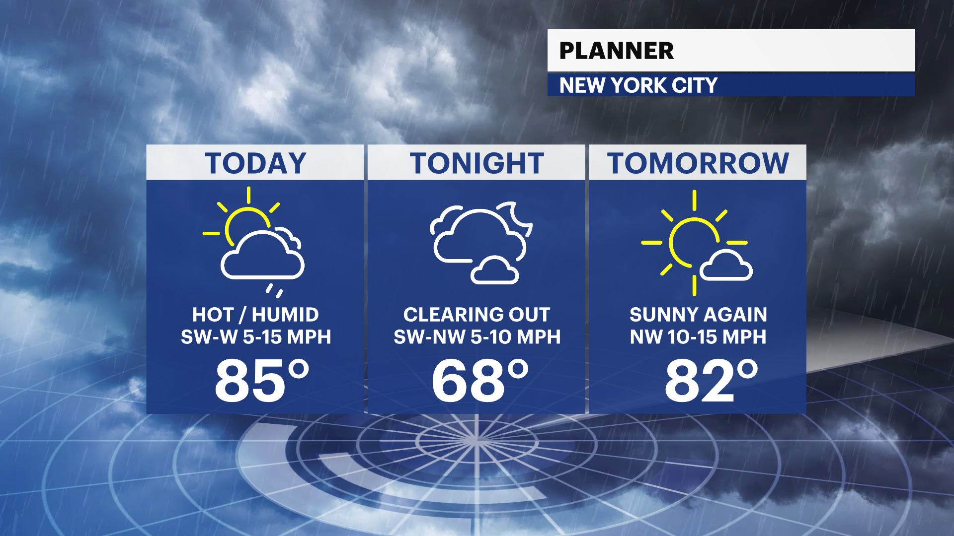 Overnight: Gradual clearing sky, mild and less humid. Lows near 67.