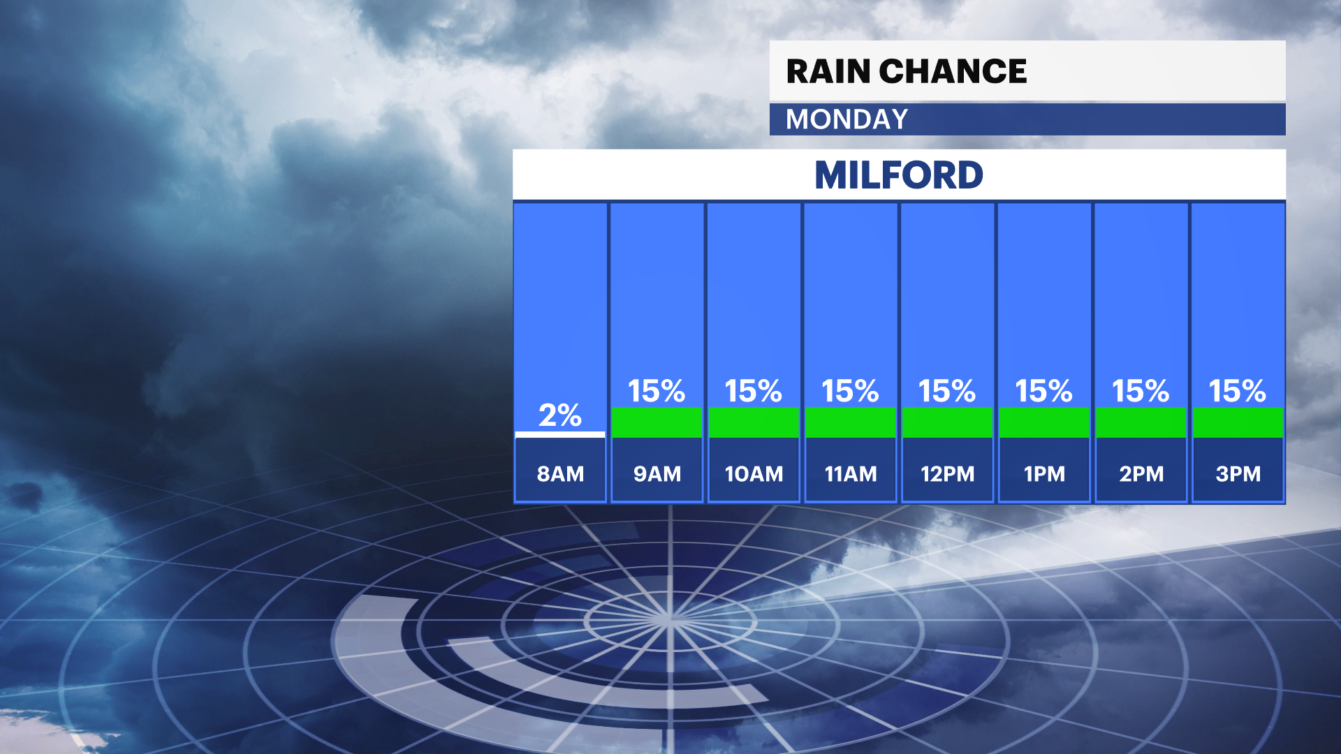 MONDAY: Mostly cloudy. Late showers. High of 60 degrees.