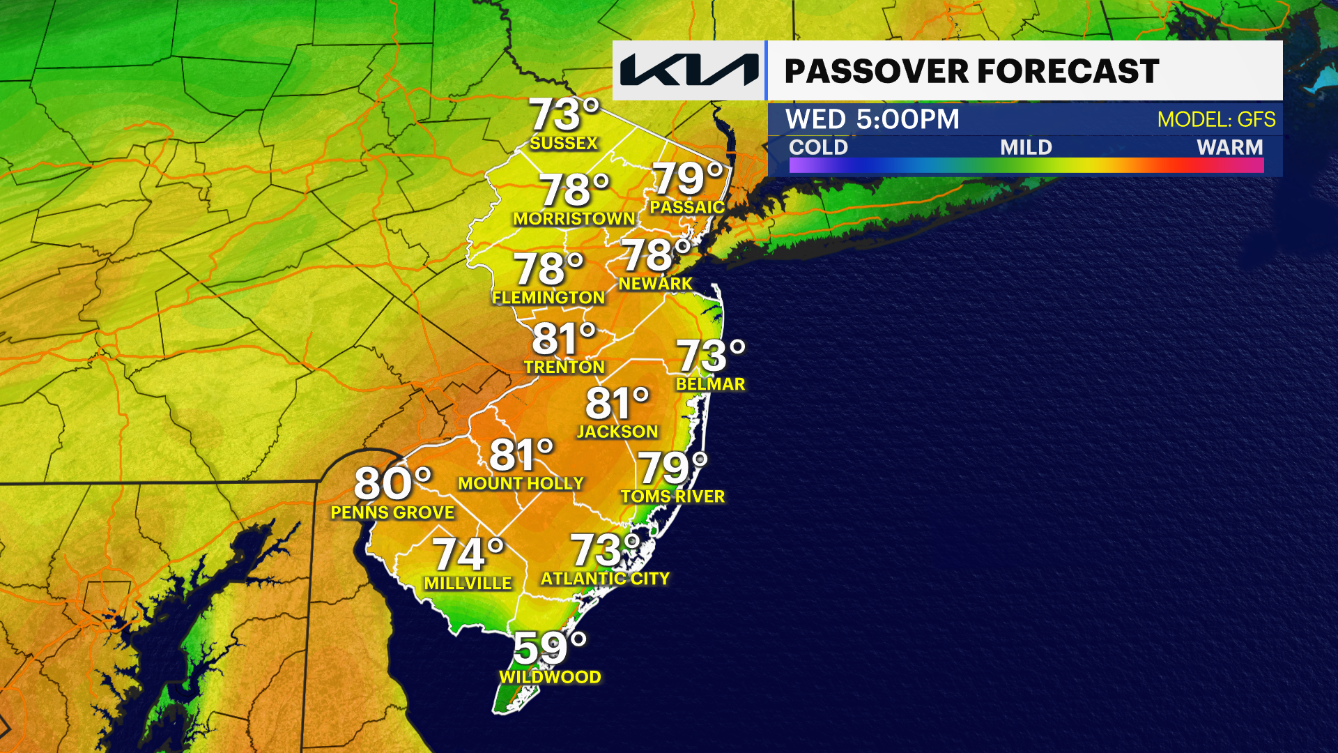 These warmer temperatures last through the middle part of the upcoming week, with a steady climb until we potentially hit the mid-70s by Tuesday and Wednesday afternoon.