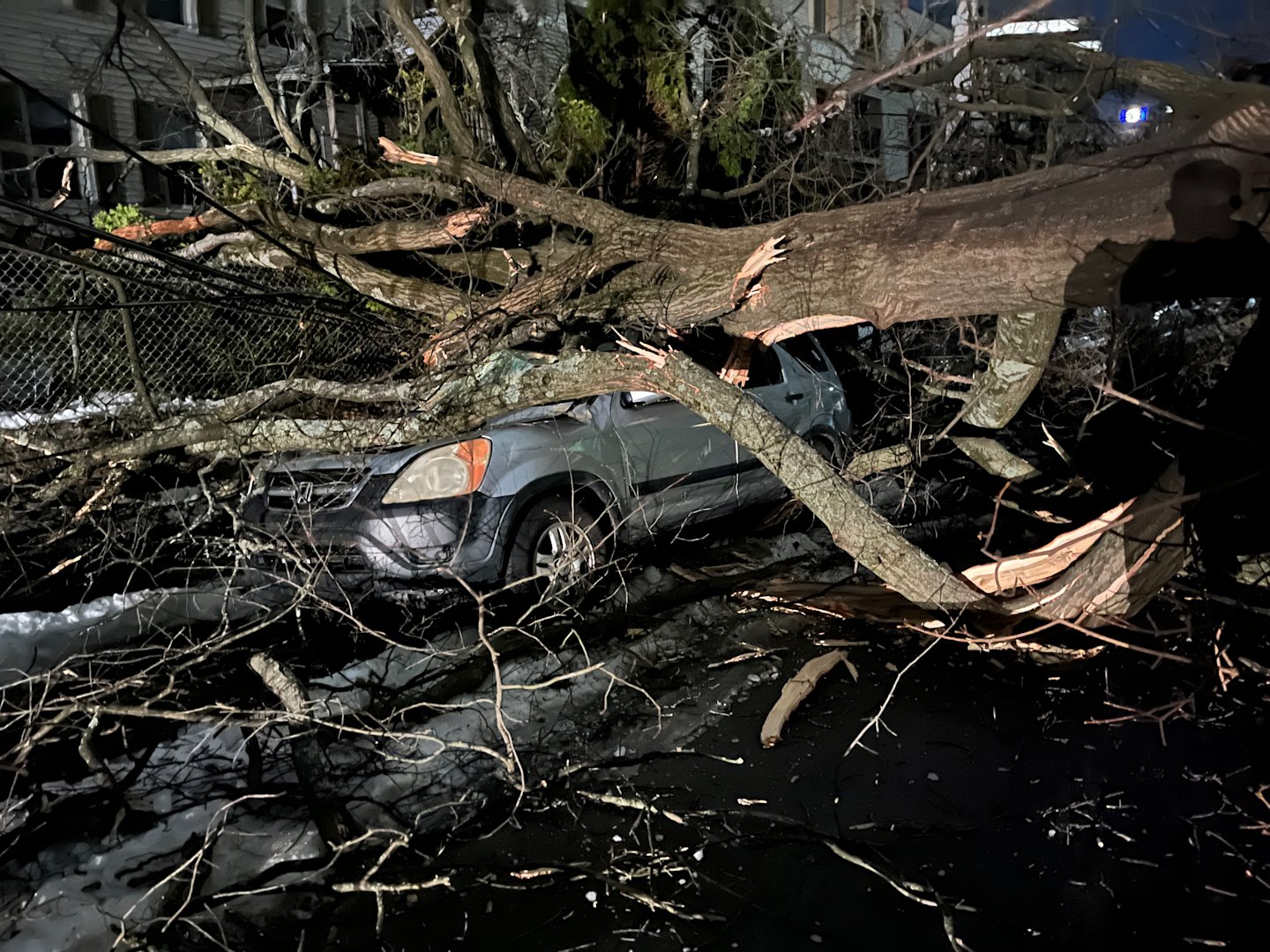 More than 550 Eversource customers in Stamford were listed on the company's website as being without power early Tuesday morning after a large tree came down on Valley Road, shortly before it turns into Highland Road.