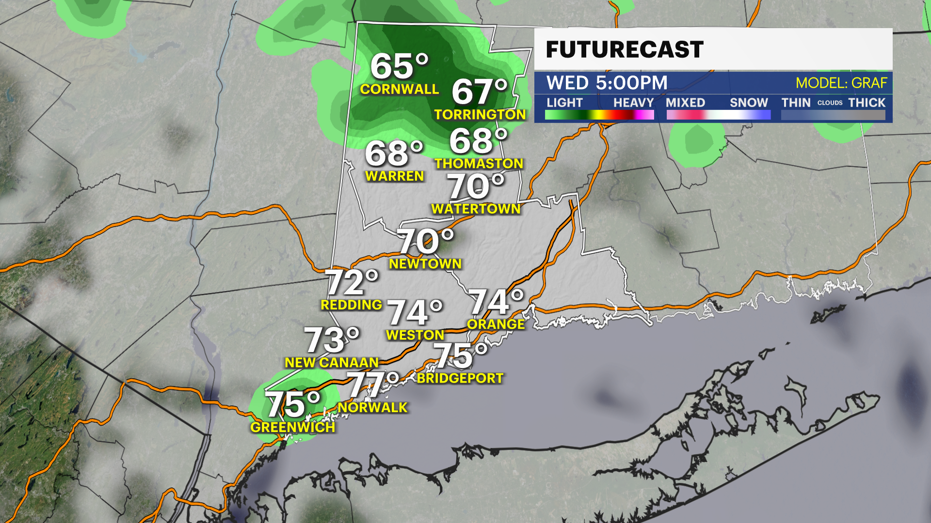 mostly cloudy and mild with lows in the low-60s. Wednesday looks to be mostly