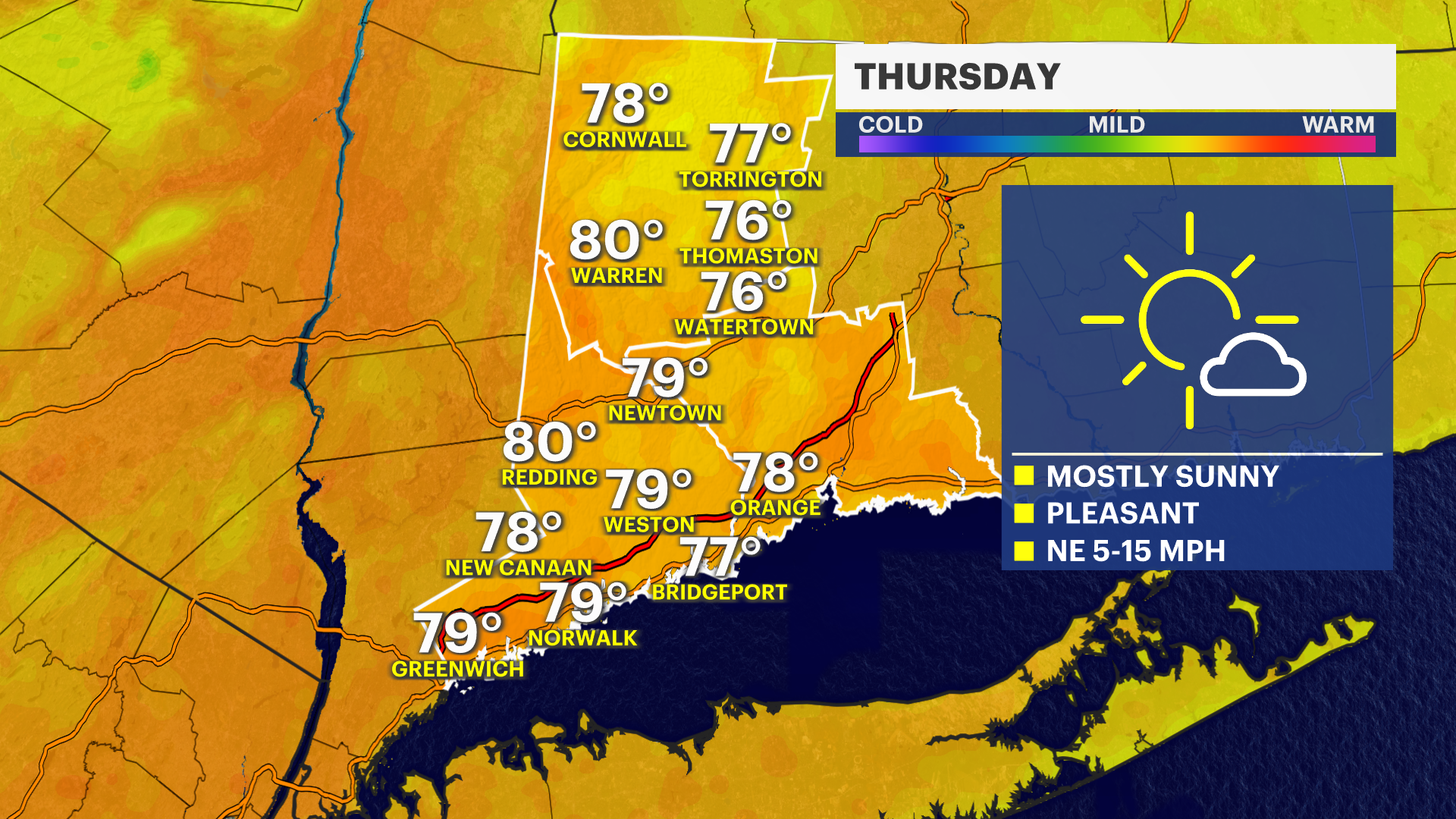 THURSDAY: Mostly sunny and pleasant. High of 78.