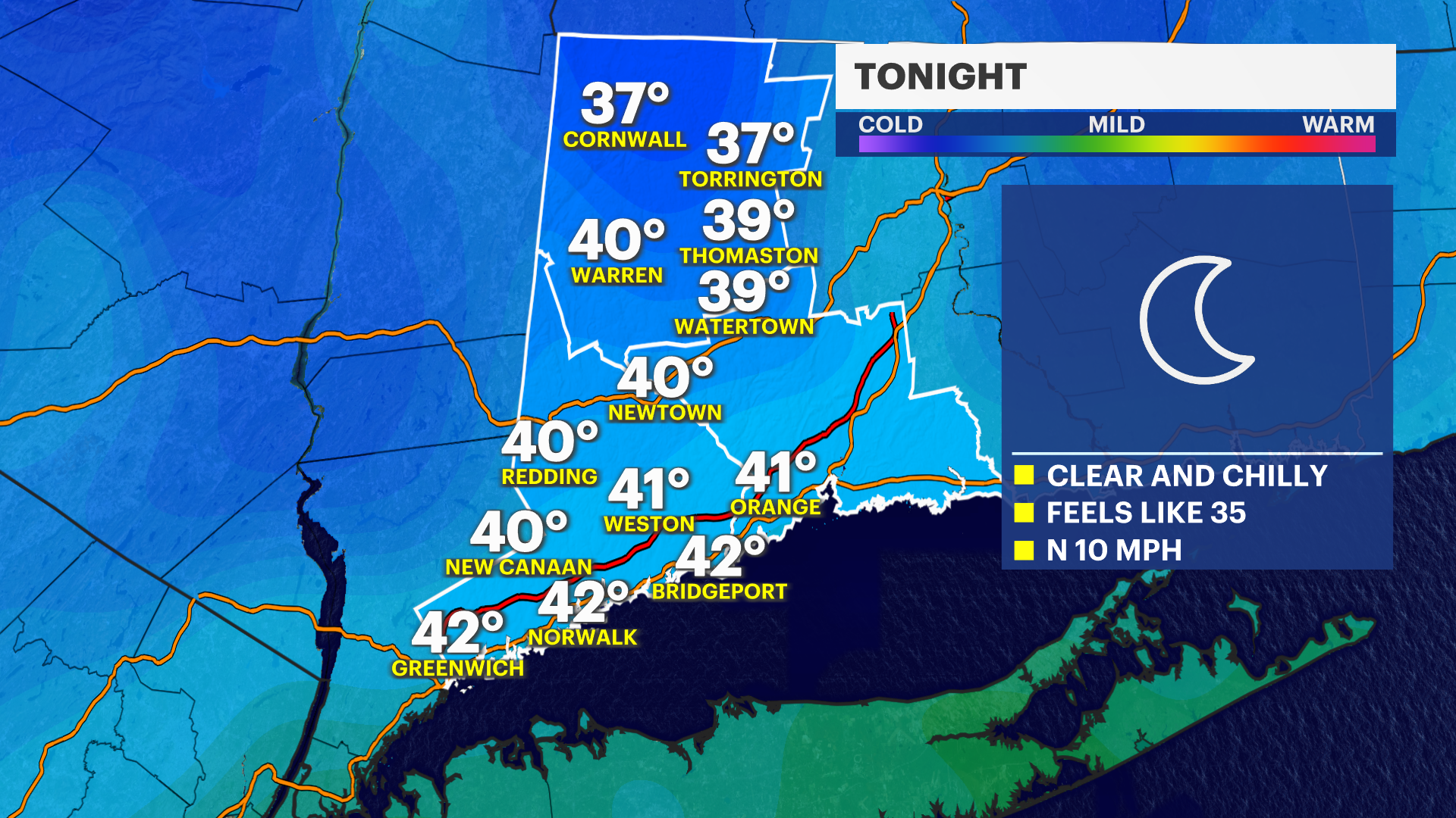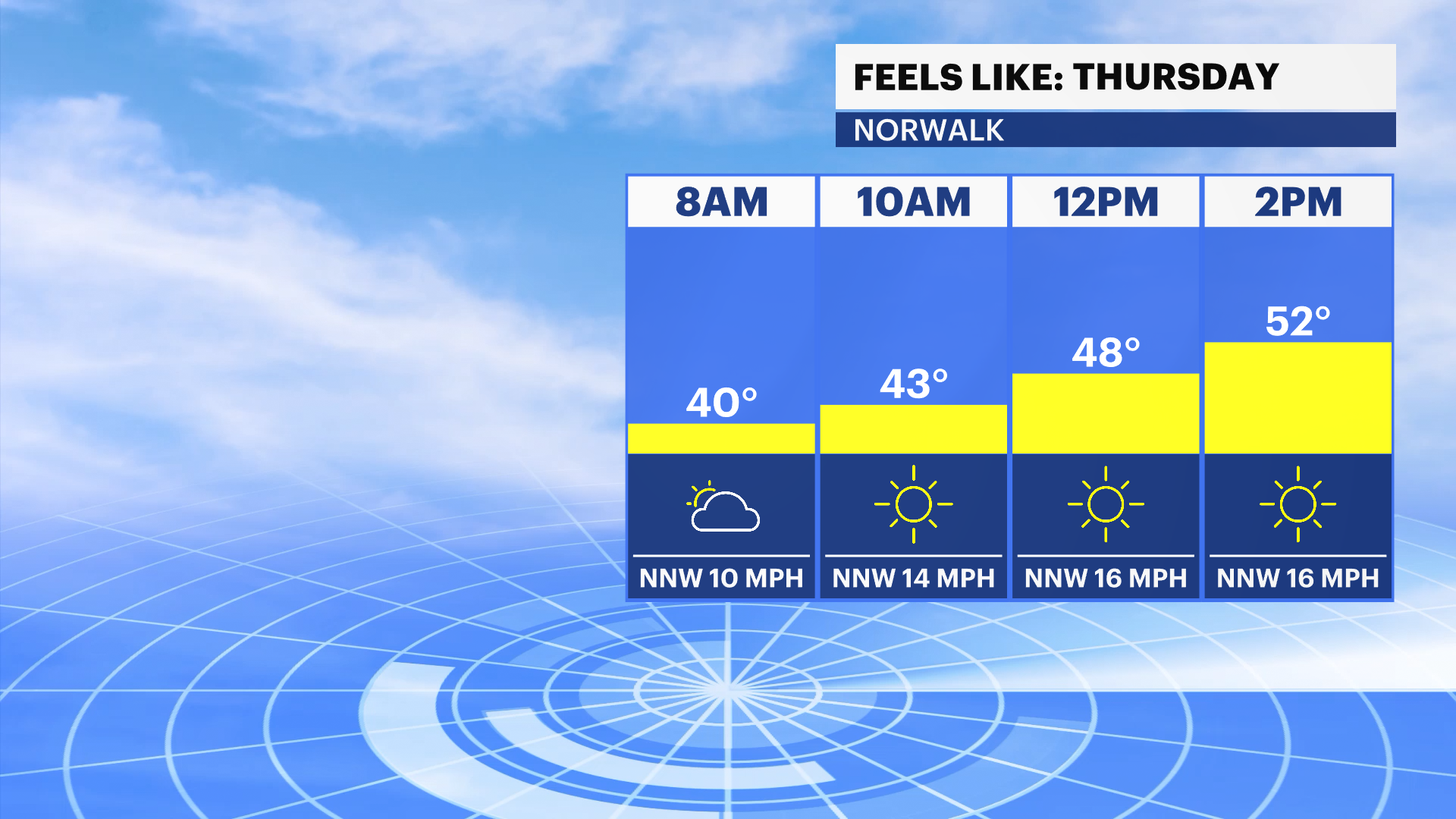 Tonight: Breezy and chilly. Lows in the low 40s but feels like the 30s for Thursday morning.