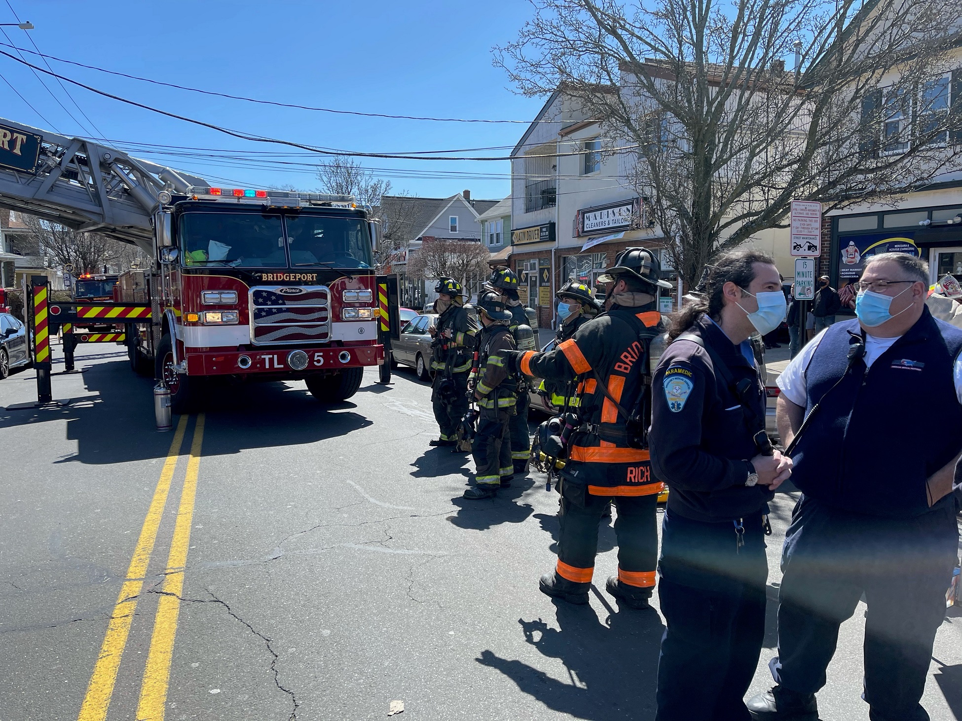 Authorities say customers in a Bridgeport barber shop "went running out the front door" Saturday when fire filled the business with smoke and flames.