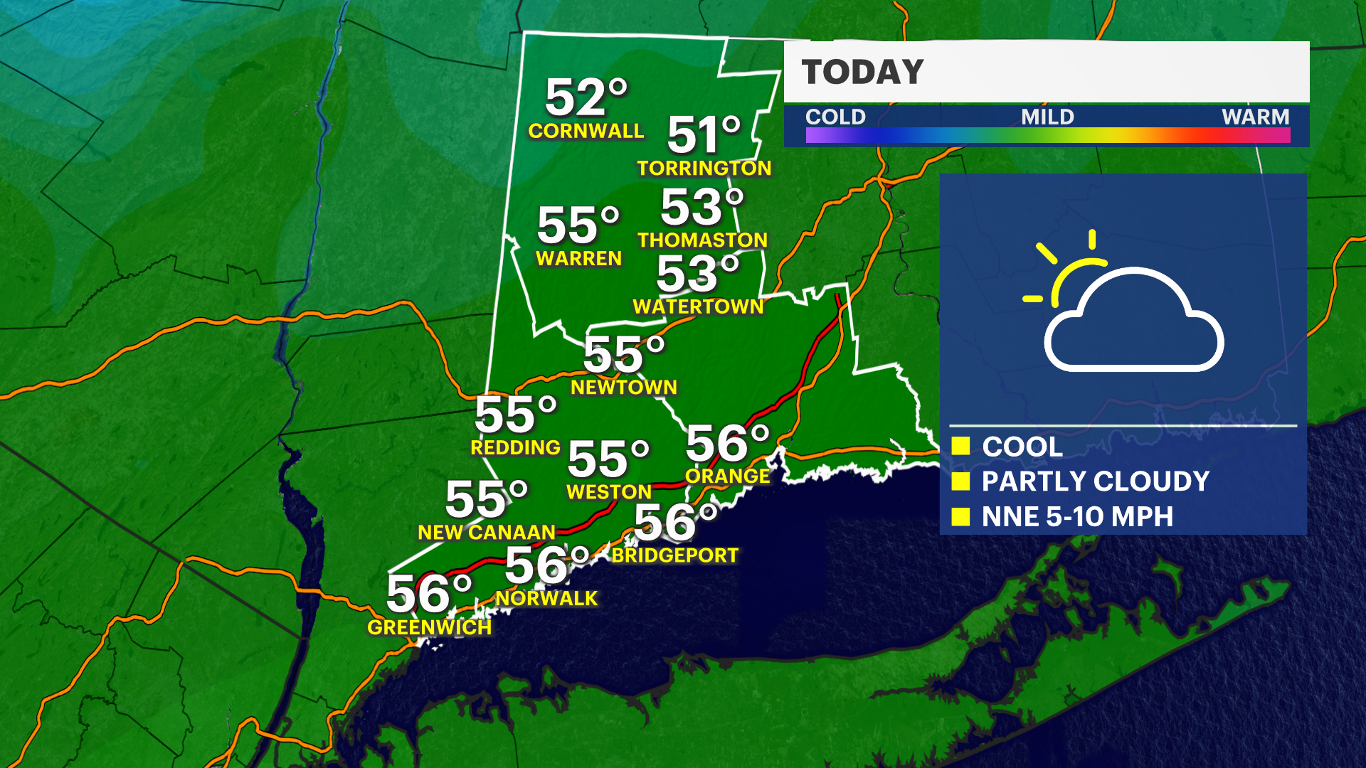 TODAY: More clouds. Highs in the low to mid 50s.