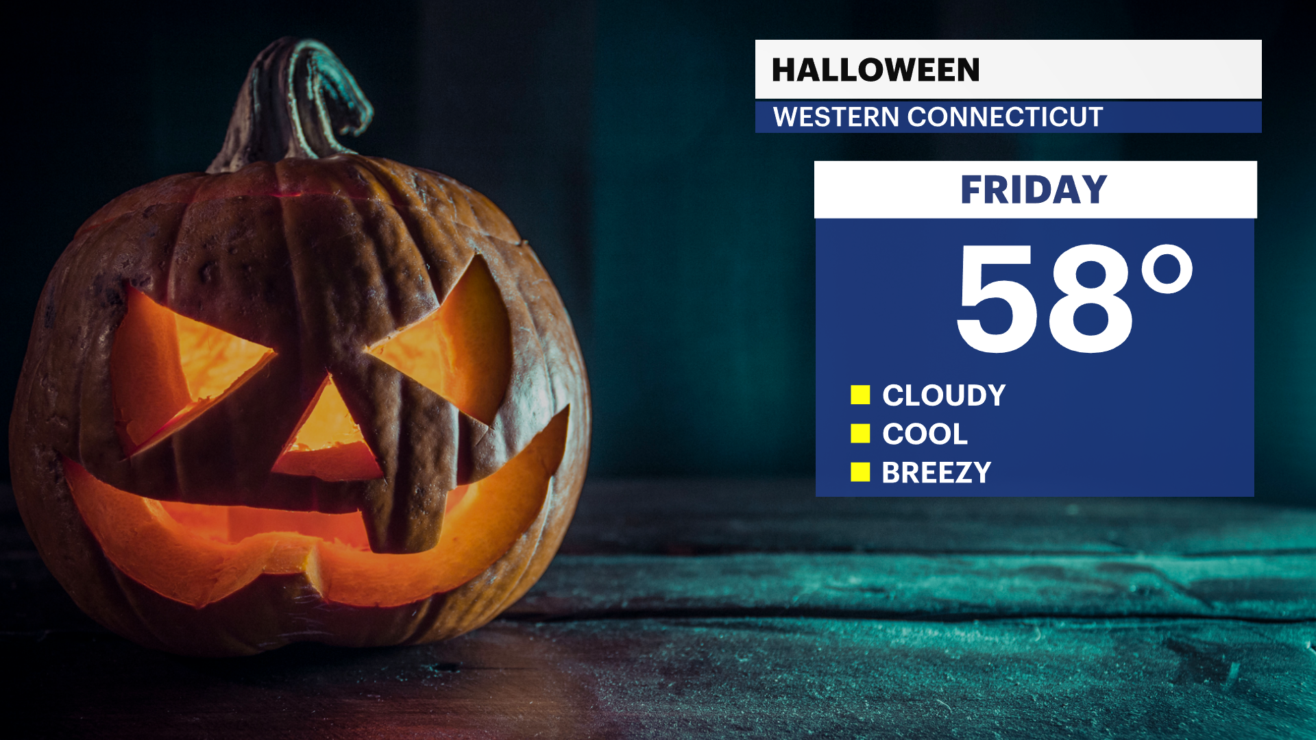 Halloween night: Cloudy, dry, and cool. 50s.