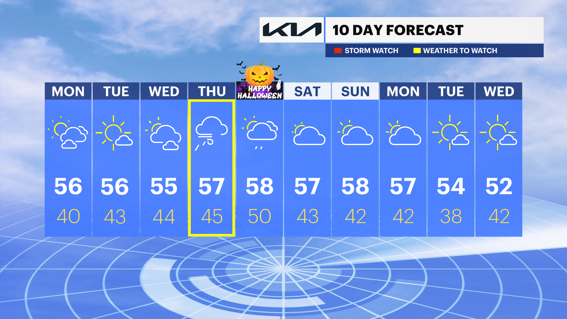 Thursday looks to be the wettest day, but conditions are expected to improve just in time for Halloween night.