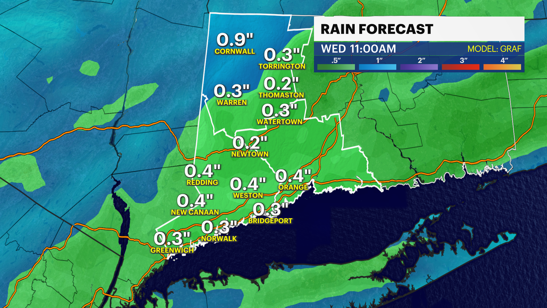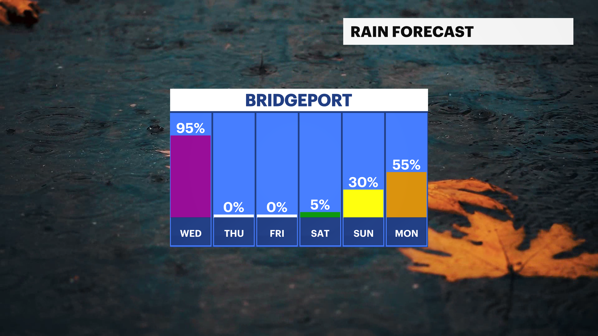The rain will move through overnight and into Wednesday morning. Rainfall totals will range from 0.5 inch to up to 1 inch. The morning commute will be damp and breezy. Watch for wet leaves, as those could become very slippery.