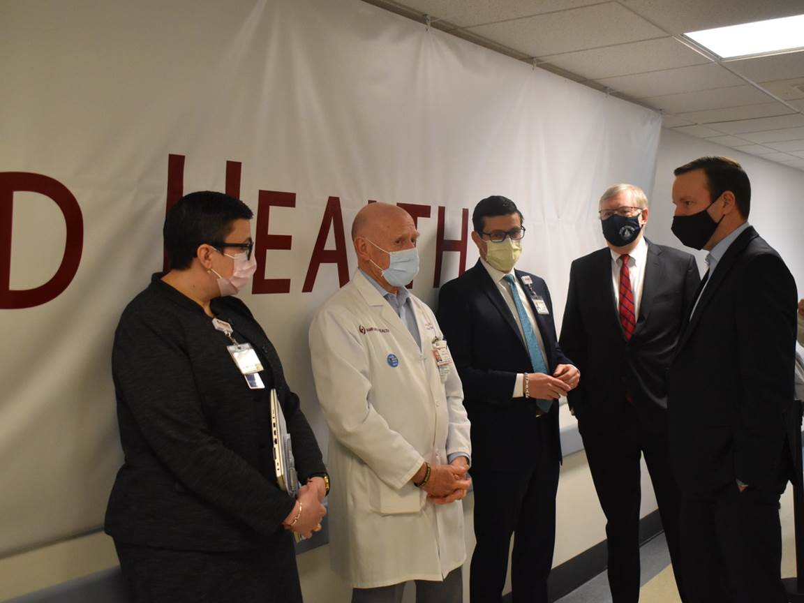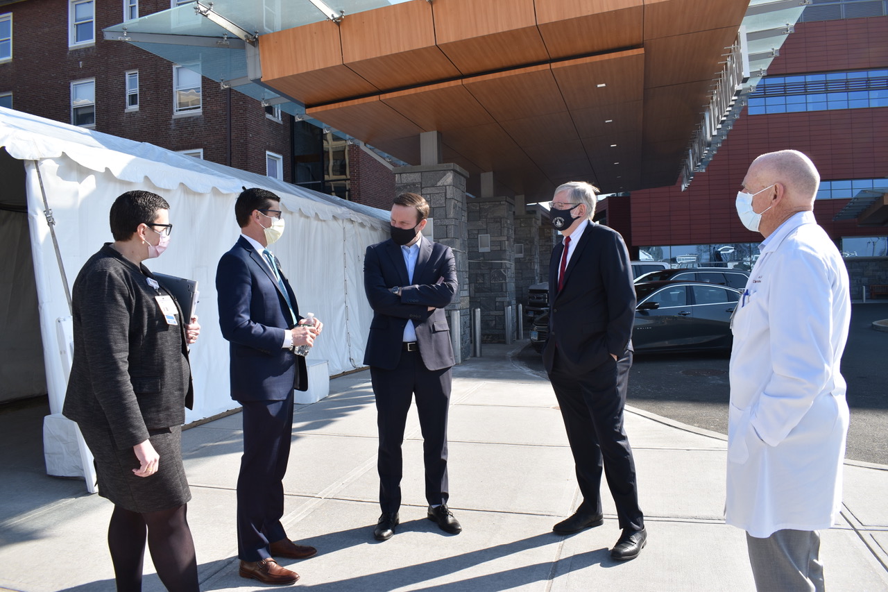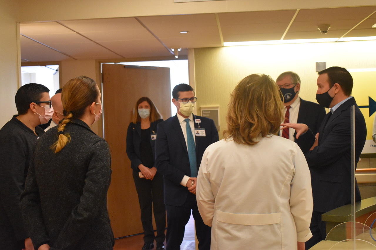 Sen.Chris Murphy visited a Stamford Health COVID-19 vaccine site today to check out how vaccination efforts are going.