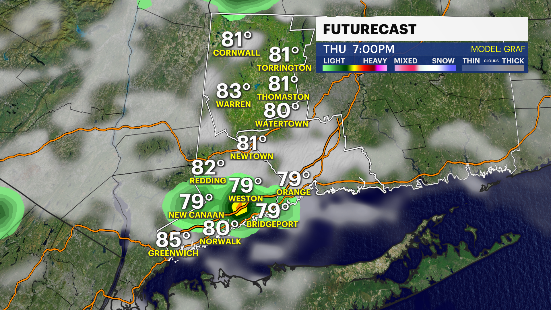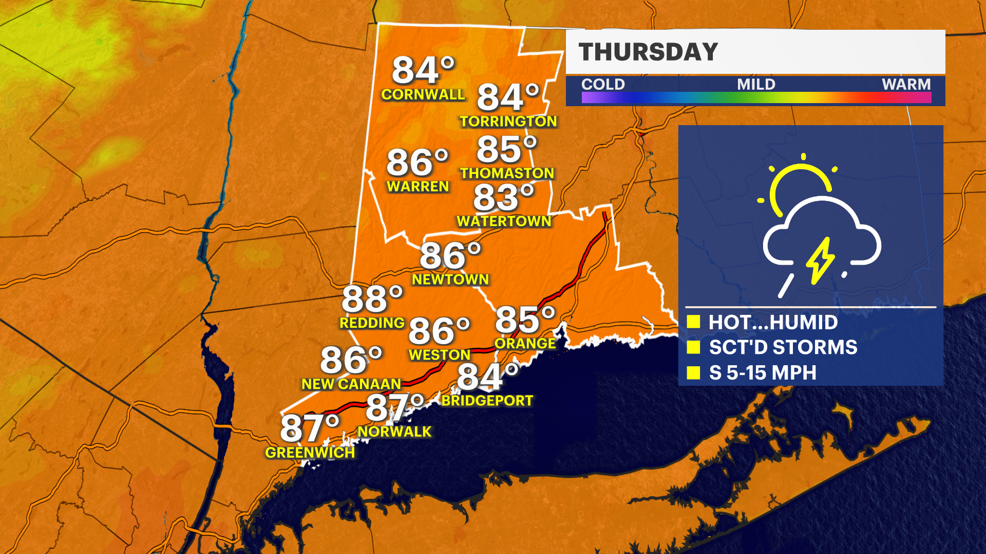 THURSDAY: Mostly sunny and warmer. High of 84.