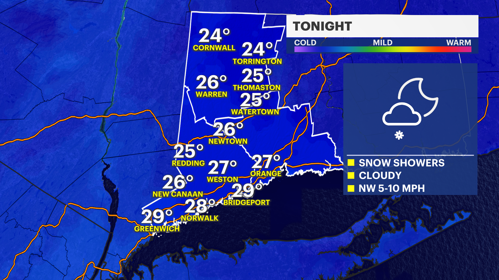 Clouds continued to increase today, with afternoon highs reaching the lower 40s. The primary focus, however, shifts to tonight as a round of light snow showers moves through the boroughs. The general timeframe for this activity is from about 8 p.m. through 5 a.m. Monday.