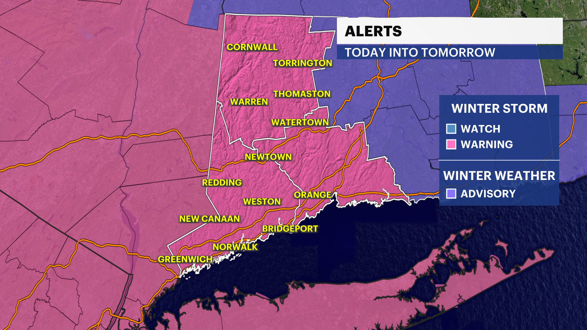 ALERTS: There is a winter storm warning in effect for western Connecticut due to high-impact snowfall expected.