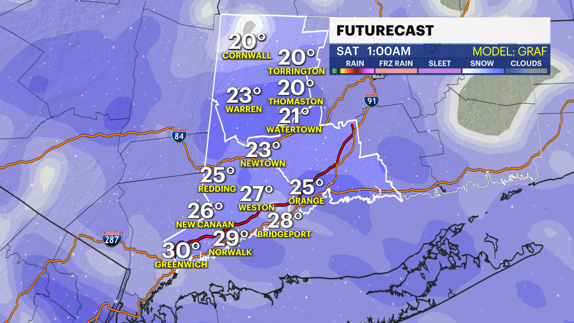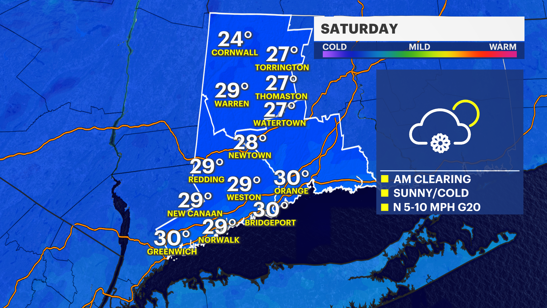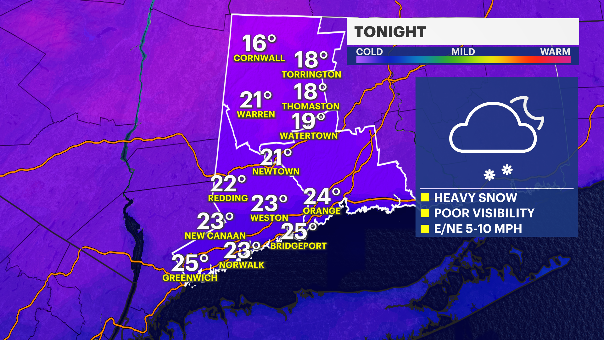 ALERTS: Winter Storm Warning for Fairfield, Litchfield and New Haven counties from 7 p.m. Friday to 1 p.m. Saturday.