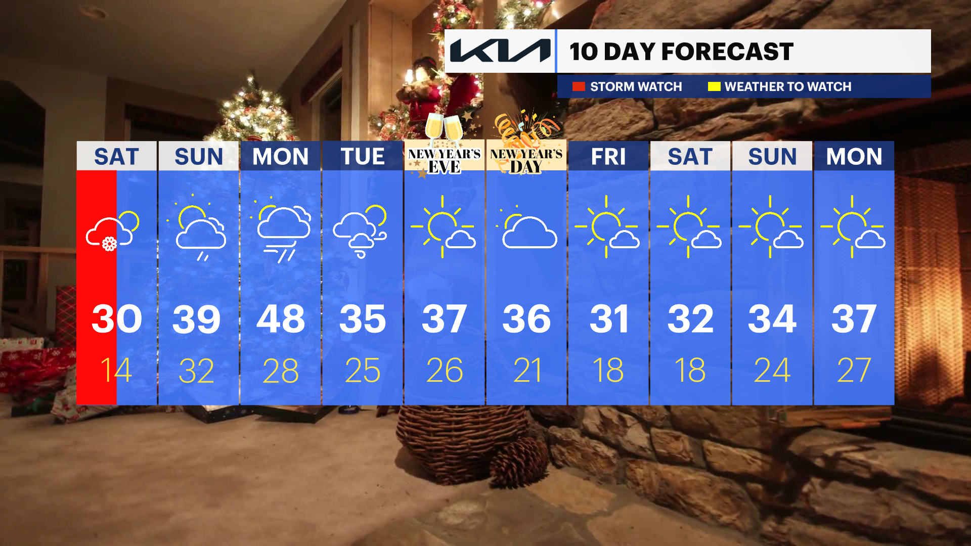 SATURDAY: Early snow, cold, mostly sunny. High of 30.